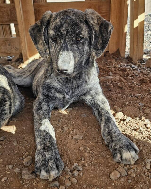 Aufgrund ihres äußeren Erscheinungsbildes und der Fellzeichnung gehen wir davon aus, dass es sich bei den Welpen um Bardino-Mischlinge handelt – eine genaue Bestätigung liegt leider nicht vor. Bardinos gehören zu den Hütehunden der Kanaren und wurden dort als Hüte‑, Wach- und Begleithunde eingesetzt. Dieser ausgeprägte Schutztrieb sollte bei der Adoption berücksichtigt und nicht unterschätzt werden. Hat man jedoch einmal das Vertrauen und die Liebe eines Bardinos gewonnen, erhält man einen treuen und loyalen Freund fürs Leben.