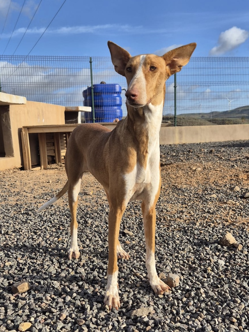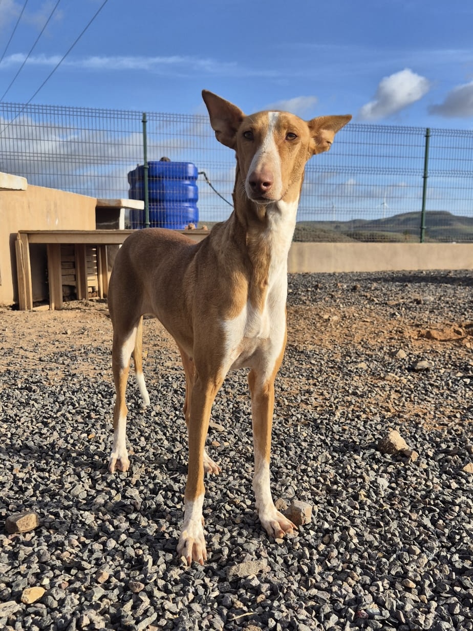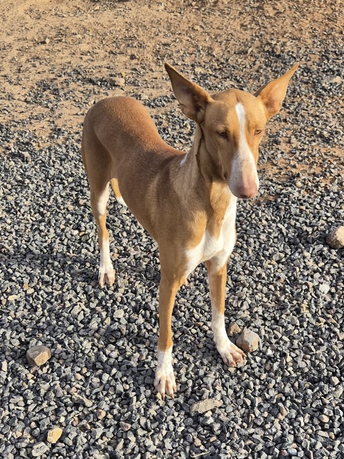 Chloe ist ein ruhiges, liebevolles Podenco-Mädchen. Sozial mit anderen Hunden, katzenverträglich und freundlich zu Kindern. Sie liebt Nähe, gemeinsame Zeit und bezaubert mit ihrem sanften Wesen.