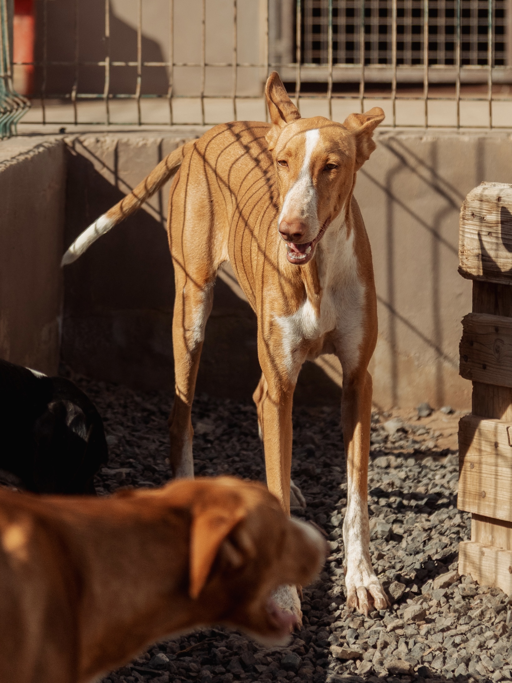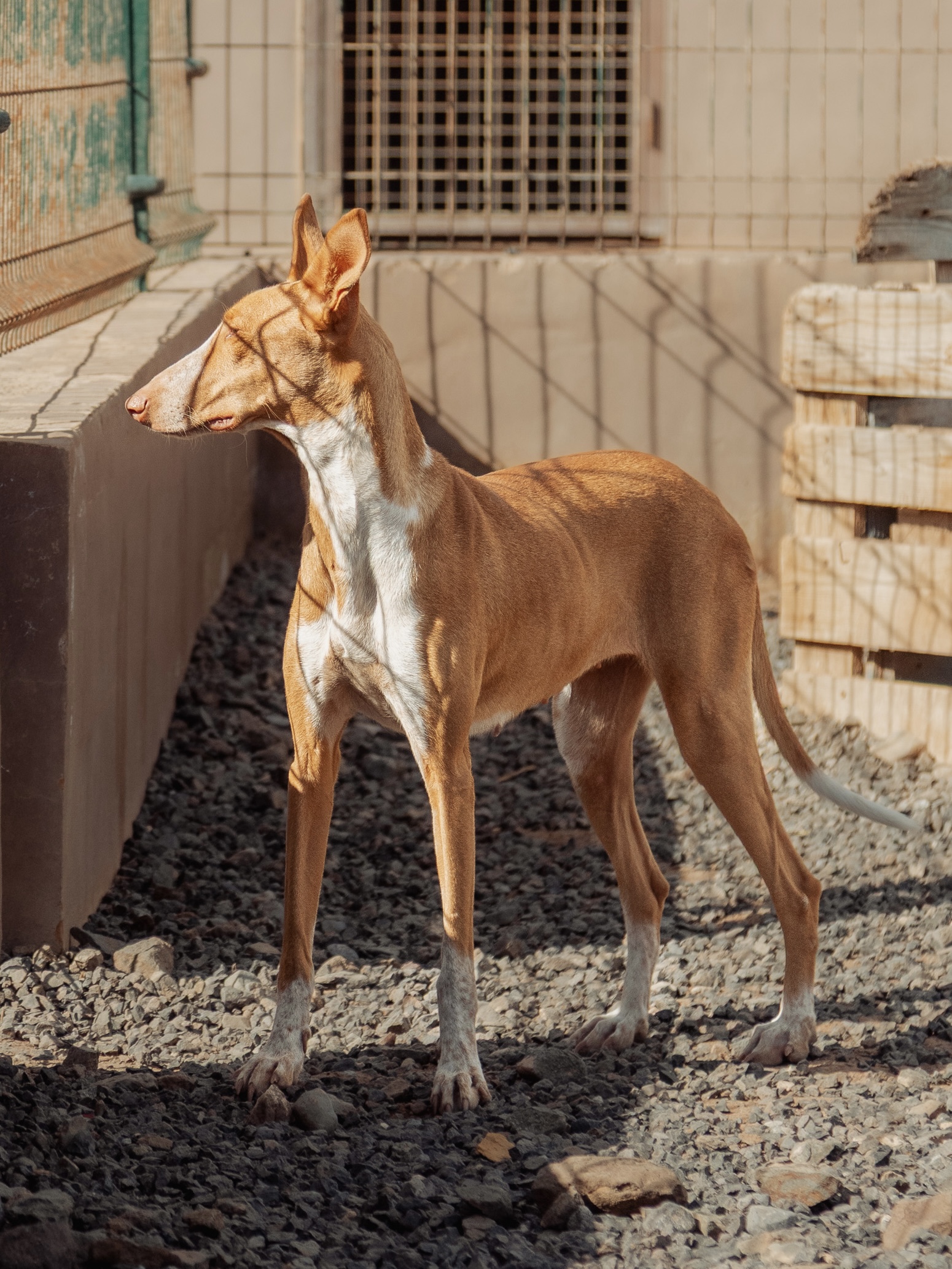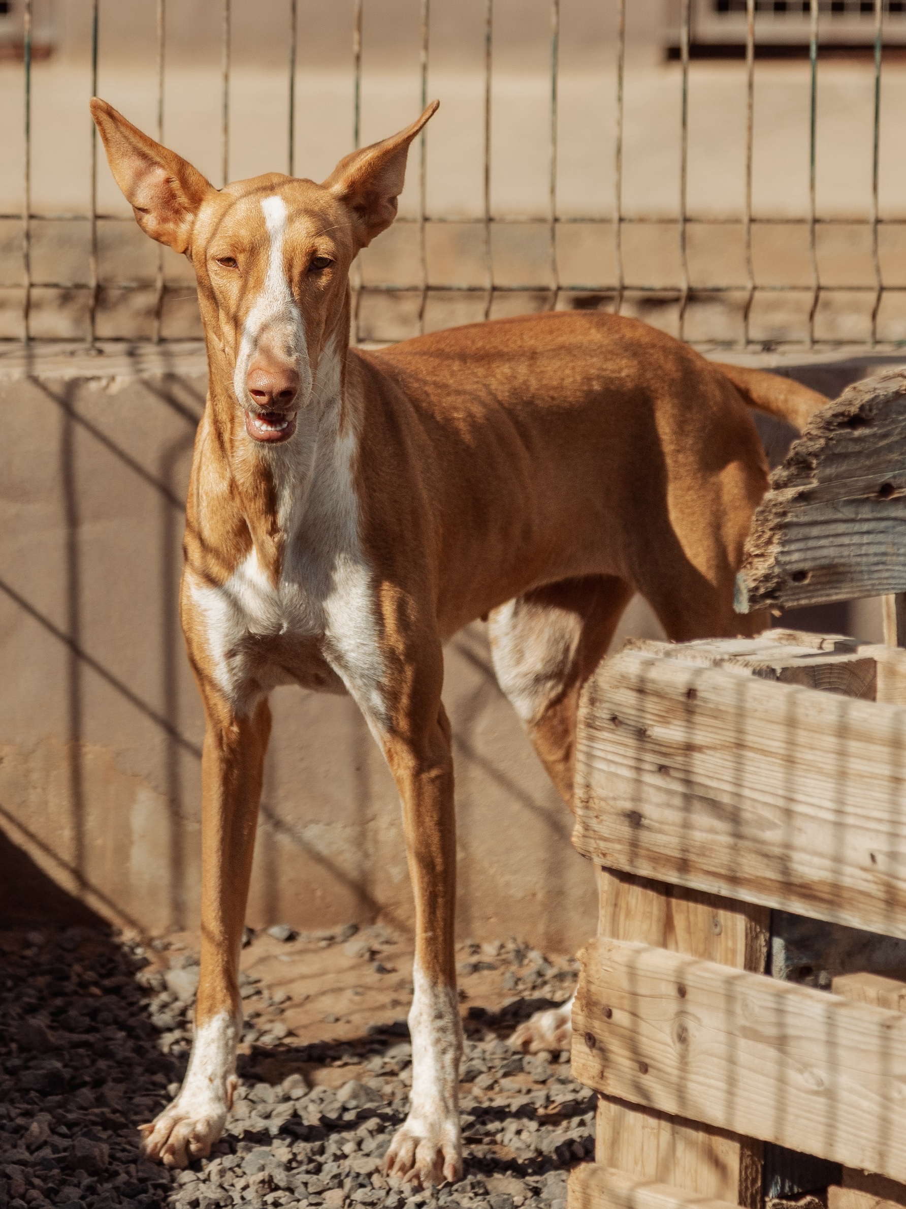 Chloe ist ein ruhiges, liebevolles Podenco-Mädchen. Sozial mit anderen Hunden, katzenverträglich und freundlich zu Kindern. Sie liebt Nähe, gemeinsame Zeit und bezaubert mit ihrem sanften Wesen.