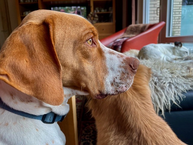 Pointerrüde Dexter konnte Mitte Januar auf eine Pflegestelle nach Niedersachsen ausreisen. Dort ist er sehr gut angekommen und hat sich bereits wunderbar in das bestehende kleine Hunderudel mit zwei vorhandenen Hunden integriert. Das Zusammenleben verläuft harmonisch. Sowohl im Haus als auch draußen zeigt sich Dexter unkompliziert, sozial und sehr lernwillig. Auf seiner Pflegestelle macht Dexter täglich tolle Fortschritte. Er lebt sich sowohl im häuslichen Umfeld als auch bei Spaziergängen souverän ein, orientiert sich gut an seinen Menschen und zeigt sich insgesamt als ausgeglichener, freundlicher und fröhlicher Begleiter. Er ist bereits stubenrein, und auch das Alleinbleiben gemeinsam mit den beiden vorhandenen Hunden funktioniert sehr gut.
