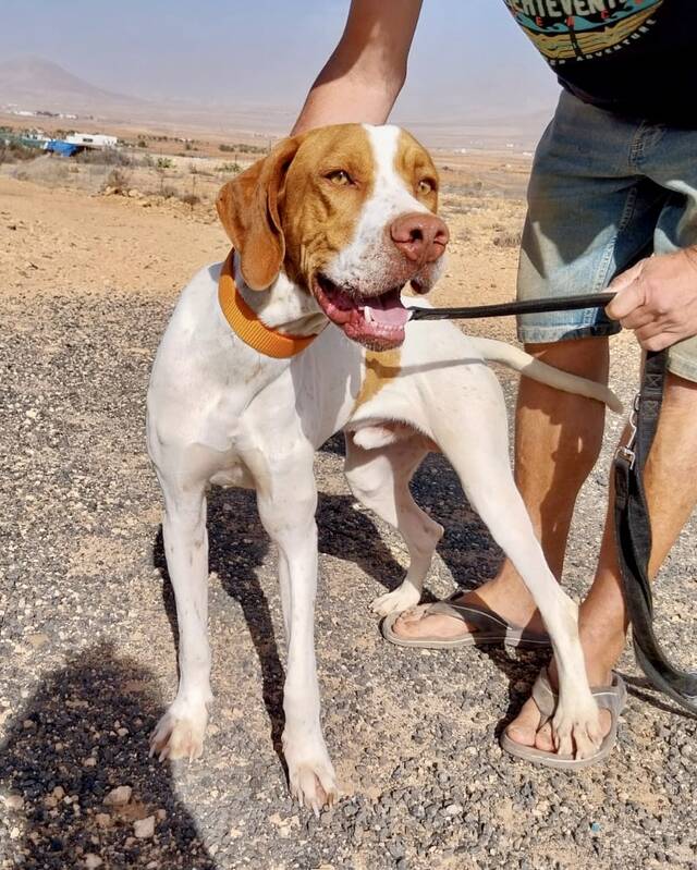 Bevor Dexter nach Deutschland ausreisen konnte, wurde er von unseren Tierschutzkollegen Sarah und Sven aus einer Perrera im Süden übernommen. Trotz der schwierigen Umstände zeigte er sich von Anfang an offen, freundlich und menschenbezogen. Das deutliche Hinken am Vorderbein war nicht zu übersehen, sein Allgemeinzustand war jedoch gut, sodass er zunächst auf der Finca untergebracht werden konnte.