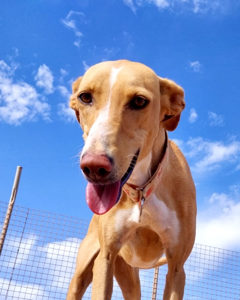 Foxy ist eine freundliche, sensible und aktive Podenco-Hündin, die unverschuldet ihr Zuhause verliert. Sie ist im Haus ruhig, kann alleine bleiben, fährt Auto, läuft gut an der Leine und versteht sich sehr gut mit anderen Hunden. Schmuseeinheiten liebt sie besonders. Für Foxy wünschen wir uns ein liebevolles Zuhause bei einfühlsamen Menschen, idealerweise mit Podenco-Erfahrung und sicher eingezäuntem Auslauf.
