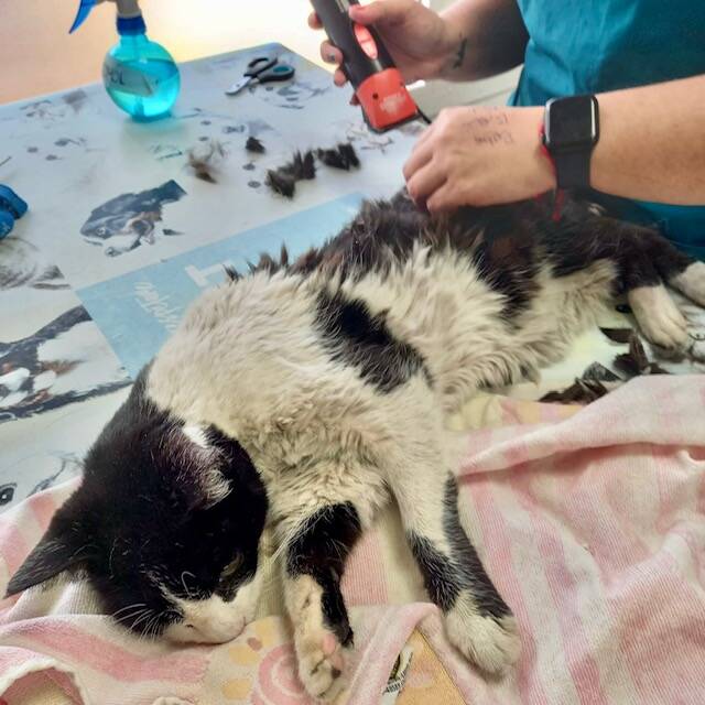 Guardia hat ihr ganzes Leben auf der Straße verbracht. Viele Jahre lebte sie rund um die Polizeistation in Morro Jable auf Fuerteventura – geduldet, gefüttert, aber letztlich sich selbst überlassen. Dieses Leben hat Spuren hinterlassen. Als Guardia immer schwächer wurde, ihr Fell stark verfilzte, sie dehydriert und krank war, wurde deutlich: Sie hätte es draußen nicht mehr geschafft.