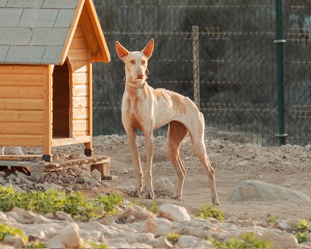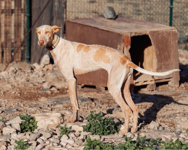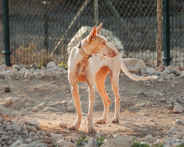 Haize ist eine ruhige, sensible Podenco-Hündin, die mit etwas Zeit und Geduld schnell Vertrauen fasst. Im Hunderudel zeigt sie sich souverän und unabhängig, mit anderen Hunden kommt sie gut zurecht, braucht aber kein wildes Toben. Inzwischen genießt sie Nähe und Streicheleinheiten sehr. Für Haize wünschen wir uns ein ruhiges, liebevolles Zuhause mit sicher eingezäuntem Garten, gern bei Menschen mit Podenco-Erfahrung.