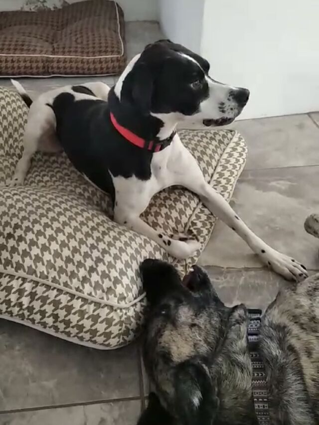 Aus diesem Grund haben wir uns entschlossen, Lexa nochmal auf der Insel „umzusetzen“ in eine ruhigere Inselpflegestelle. So zog Lexa im Frühjahr 2023 zu Sonya und ihrem kleinen Hunderudel auf Fuerteventura um. Dort darf sie gemeinsam mit den anderen Hunden im Haus leben.