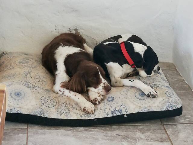 Dort machte Lexa innerhalb eines Jahres nur kleine Fortschritte. Weder die Menschen noch andere Artgenossen konnten Lexa bewegen aus sich herauszukommen. Sie flüchtete zwar nicht mehr wie zu Beginn und gewöhnte sich an die Abläufe des Fincaalltages, zeigte jedoch wenig Lebensfreude und wedelte nicht einmal mit ihrer Rute. Am sichersten fühlte sich die Pointerhündin in ihrer Schlafbox. Leider ist über ihre Vorgeschichte nichts bekannt man kann nur Vermutungen anstellen. Sicherlich hat Lexa in ihrer Vergangenheit keine guten Erfahrungen mit dem Menschen erleben können, wurde isoliert gehalten und hat so gut wie nichts kennenlernen dürfen. Ihre Notdurft verrichtete sie nur in ihrer Schlafbox, sicherlich weil sie nichts anderes gewohnt war und sie sich dort einigermaßen sicher fühlte. Berührungen ließ sie nur über sich ergehen.