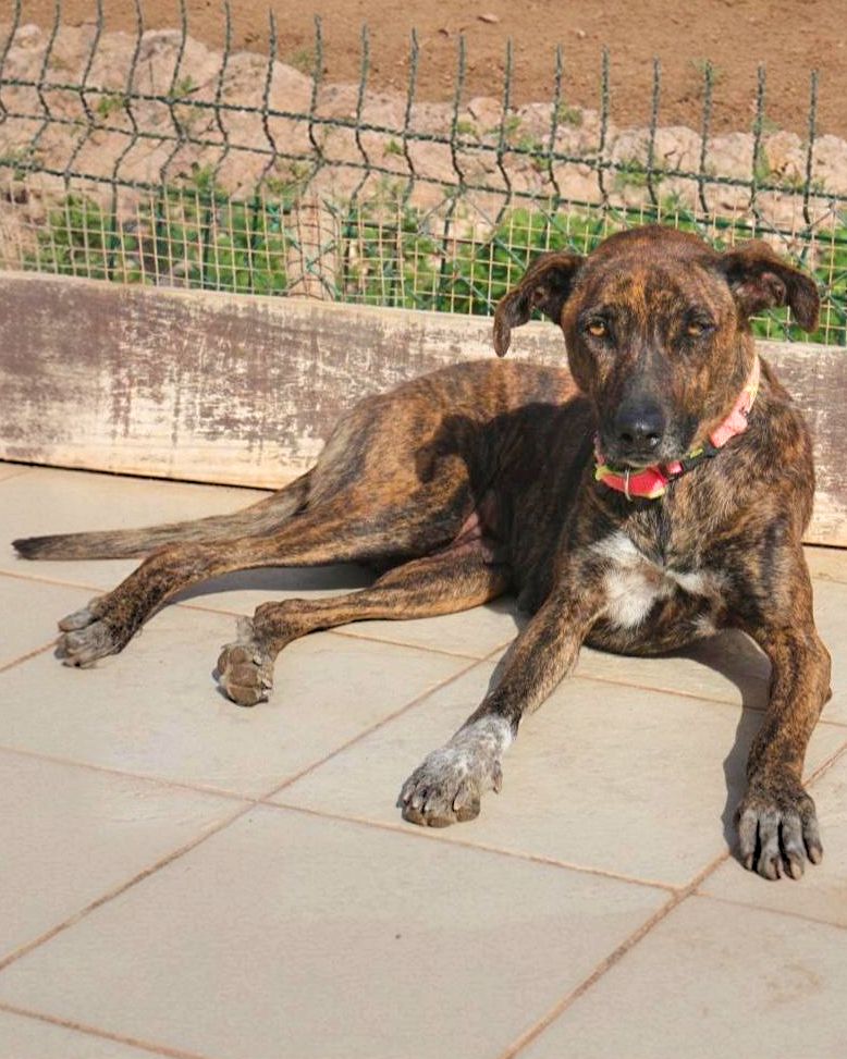 Wir vermuten in Mora eine Mischung aus Podenco und Bardino. Sie bewacht gerne das Grundstück und ist sehr aufmerksam, aber sie hat auch viel Energie und rennt für ihr Leben gerne. Sie ist auch eine sehr saubere Hündin die ihre Notdurft lieber in großer Entfernung zu ihrem Schlafplatz verrichtet, die warme Kuscheldecke hinterlässt sie als hätte die Maus gar nicht drauf gelegen.