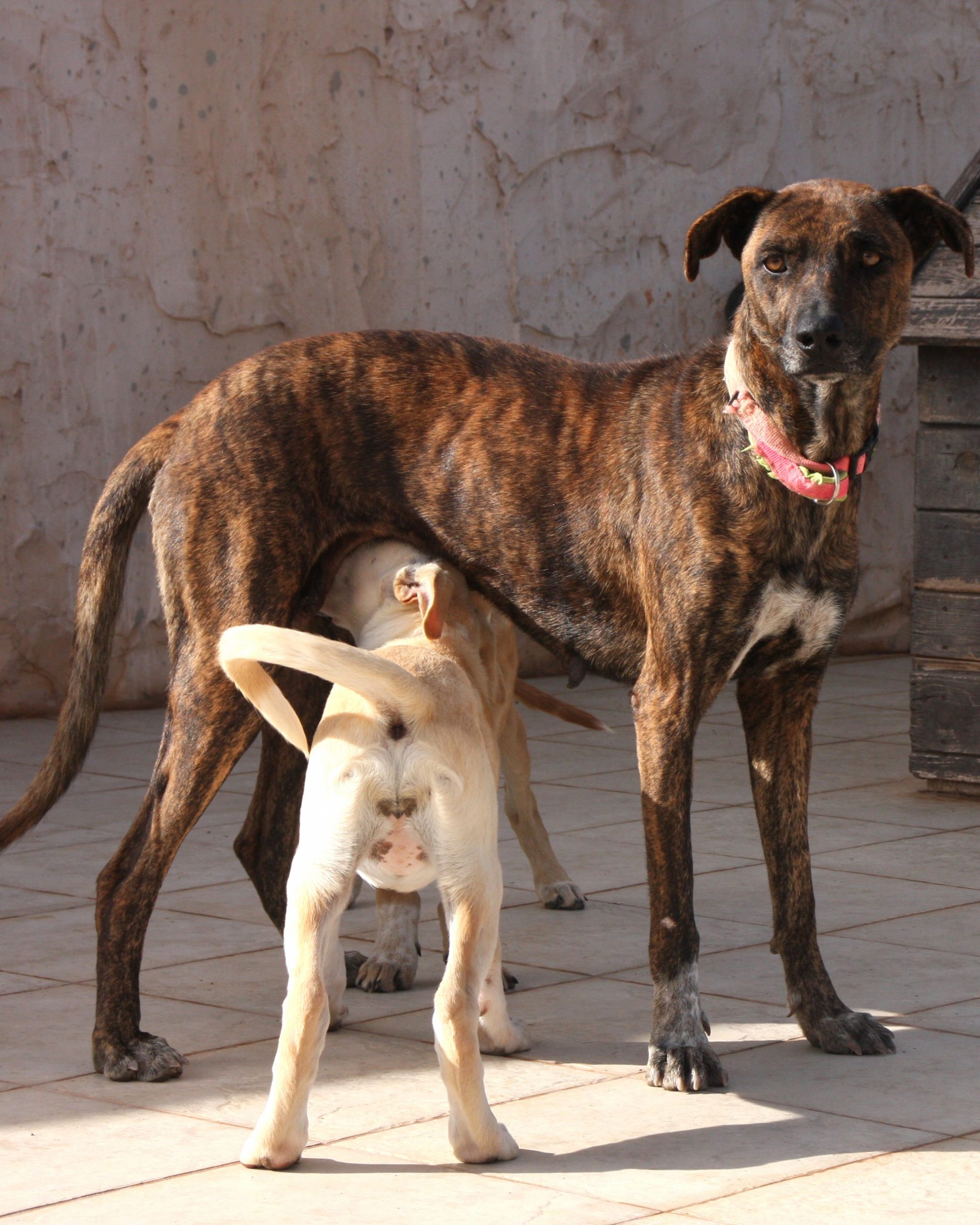 Mora zeigte sich als eine liebevolle, zärtliche Hundemama, statt ihren großen Hunger zuerst zu stillen, ließ sie ihrem Nachwuchs den Vortritt. Die hübsche Hündin spielte rührend mit ihren Welpen und hatte auch kein Problem damit, dass Pancho und Andrea die Kleinen streichelten und mit ihnen schmusten.