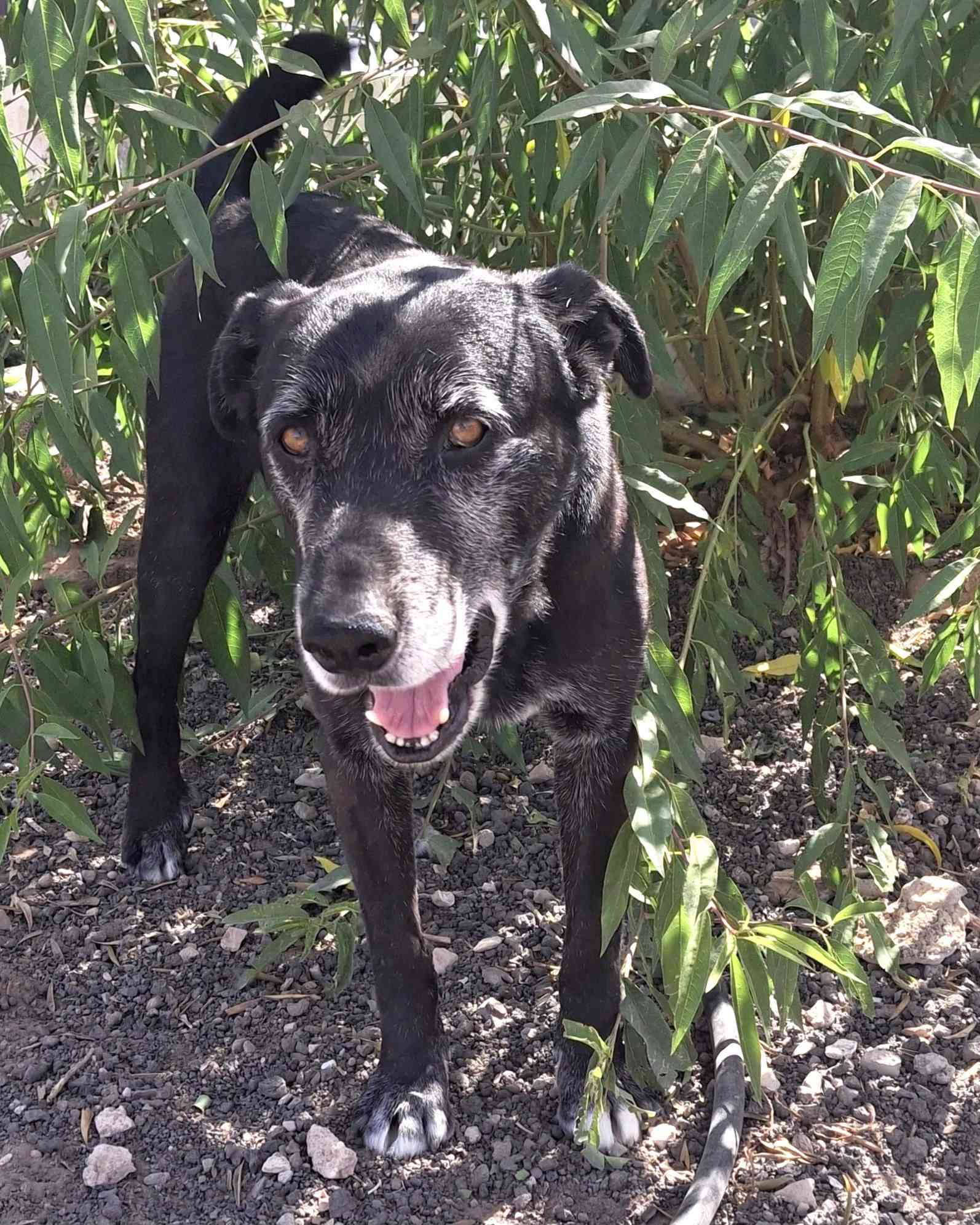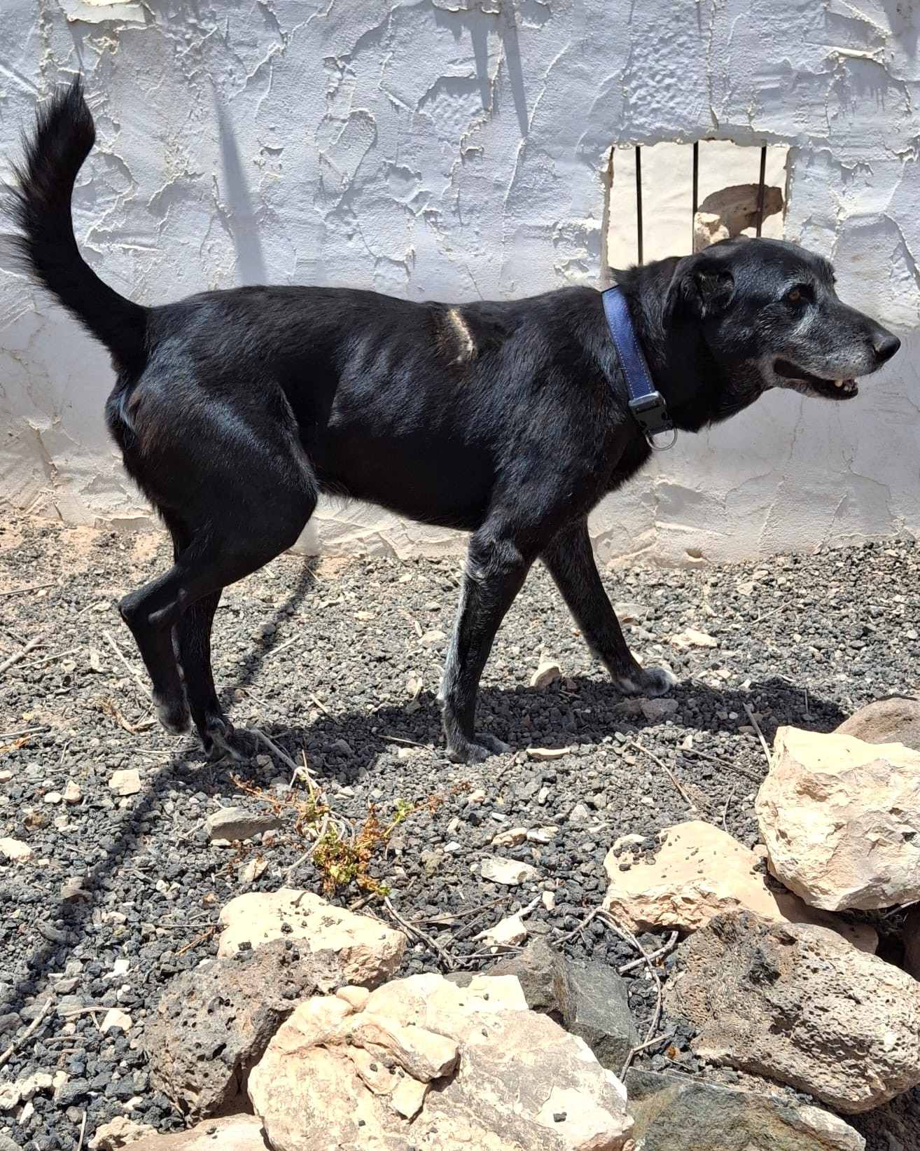 Aber er genießt seine Freiheit auf dem Grundstück herumzulaufen, sowie viel Liebe und Leckereien. Er folgt seinen Betreuern und freut sich über Streicheleinheiten und Aufmerksamkeit sowie ein bequemes Bett im Schatten. Er macht kurze Spaziergänge in der Natur, ist aber immer glücklicher, wenn er in die Sicherheit zurückkehrt, die er nun kennt.