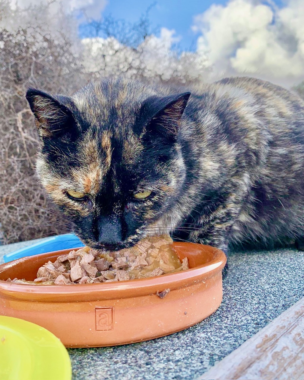 Patty ist etwa 9 Jahre alt und eine echte Persönlichkeit. Wenn Sabine mit dem Nassfutter kommt, ist sie sofort zur Stelle – denn dafür tut sie einfach alles! Dann darf man sie sogar streicheln und vorsichtig anfassen, doch wenn es um Medikamente, Floh- oder Wurmmittel geht – oder gar einen Tierarztbesuch –, dann zeigt sich ihre wilde Seite.