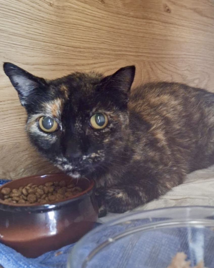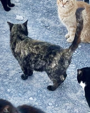 Als kleines Jungtier wurde sie ausgesetzt und sich selbst überlassen. Zum Glück konnte sie damals von unserer Katzenbeauftragten Sabine Rösch eingefangen, kastriert und in die Kolonie integriert werden. Seitdem steht sie unter Sabines liebevoller Obhut – gut versorgt, umsorgt und immer mit einem wachsamen Auge auf ihr Wohl.