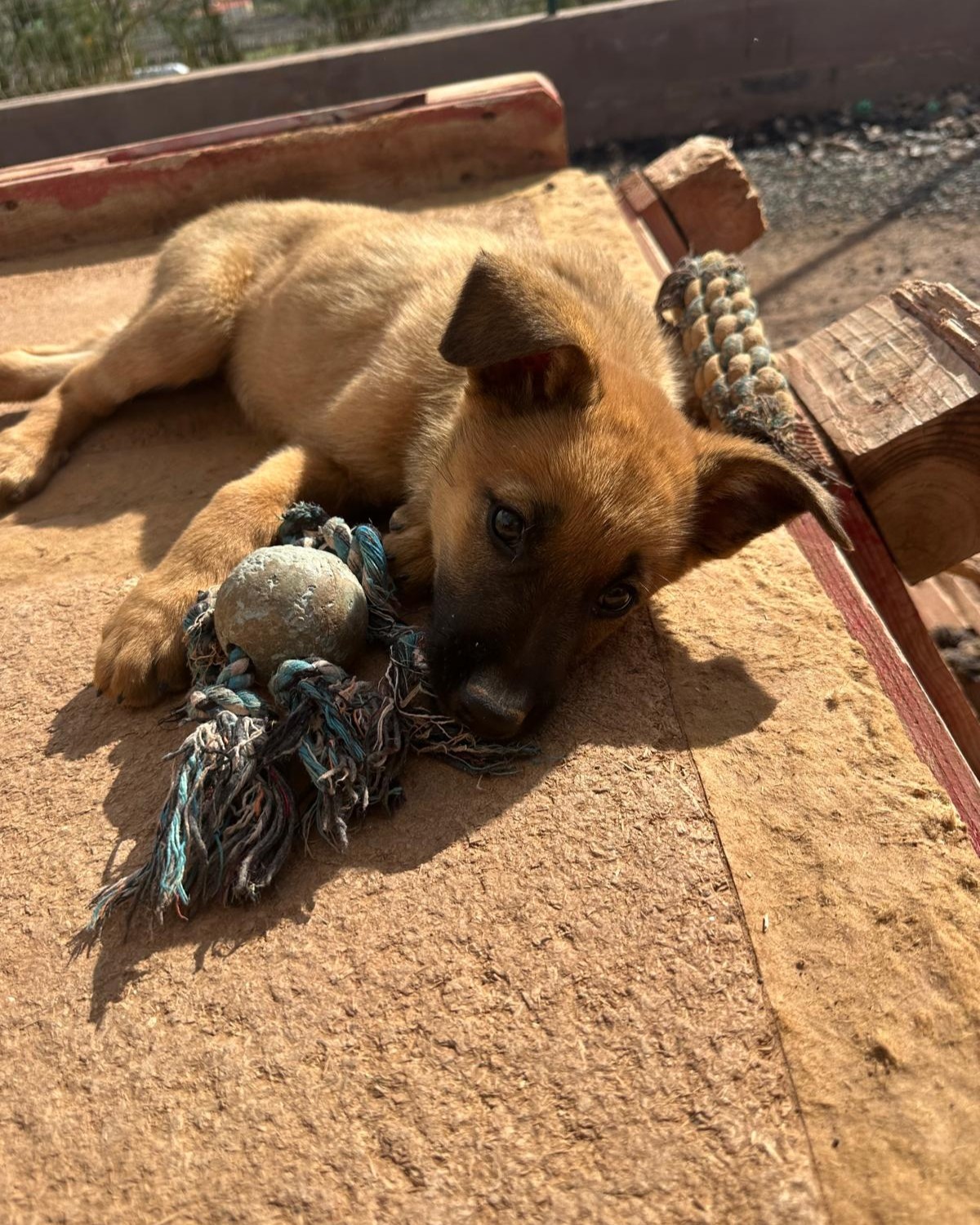 Raquel und ihre beiden Geschwister Rio und Ronja hatten keinen einfachen Start ins Leben. Ganz allein wurden sie in La Oliva gefunden und zunächst in die dortige Perrera gebracht. Da eine Perrera für die Aufzucht von Welpen kein geeigneter Ort ist, baten die Mitarbeiter um Unterstützung. Auf der Finca Zoe war genügend Platz, sodass die drei Welpen dort einziehen durften und in Ruhe ankommen konnten.