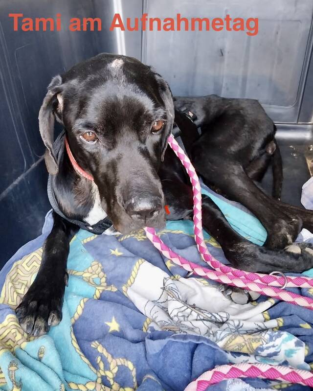 Mitte Oktober durfte Tami auf eine erfahrene Pflegestelle nach Nordhessen ausreisen. Dort lebt sie in einem gemischten Jagdhunderudel und wird behutsam weiter auf ihrem Weg begleitet.