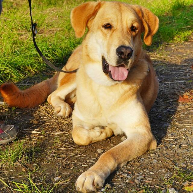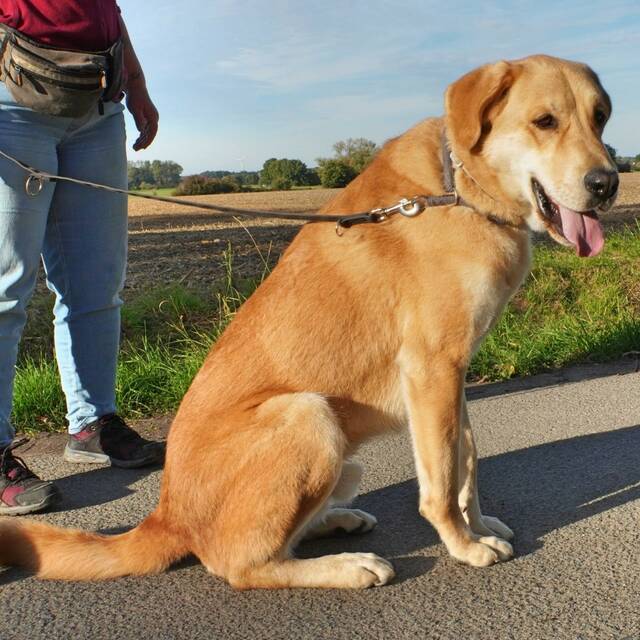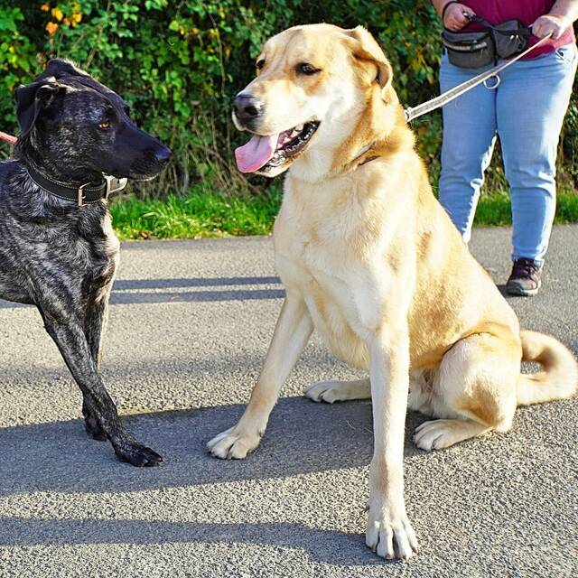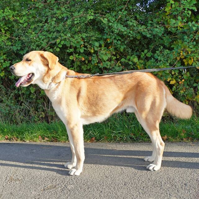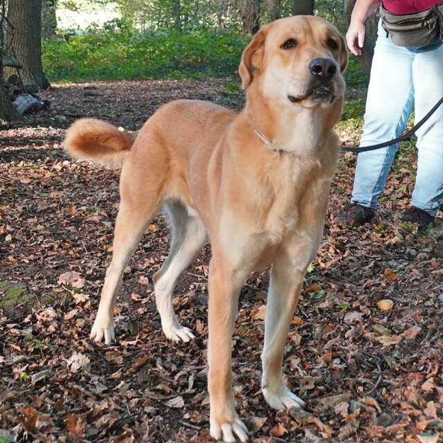 Der hübsche, imposante Rüde läuft recht gut an der Leine, dennoch sollten seine neuen Besitzer natürlich in der Lage sein, einen solch großen und kräftigen Hund sicher zu führen. Mit Artgenossen ist Tay grundsätzlich verträglich, somit kann er auch zu einer souveränen Hündin vermittelt werden, die ihm körperlich gewachsen ist, denn im Freilauf verhält sich Tay wie ein tollpatschiger Junghund, der noch nicht so genau weiß, wie groß seine Kräfte sind und wo genau sich seine Gliedmaßen befinden.