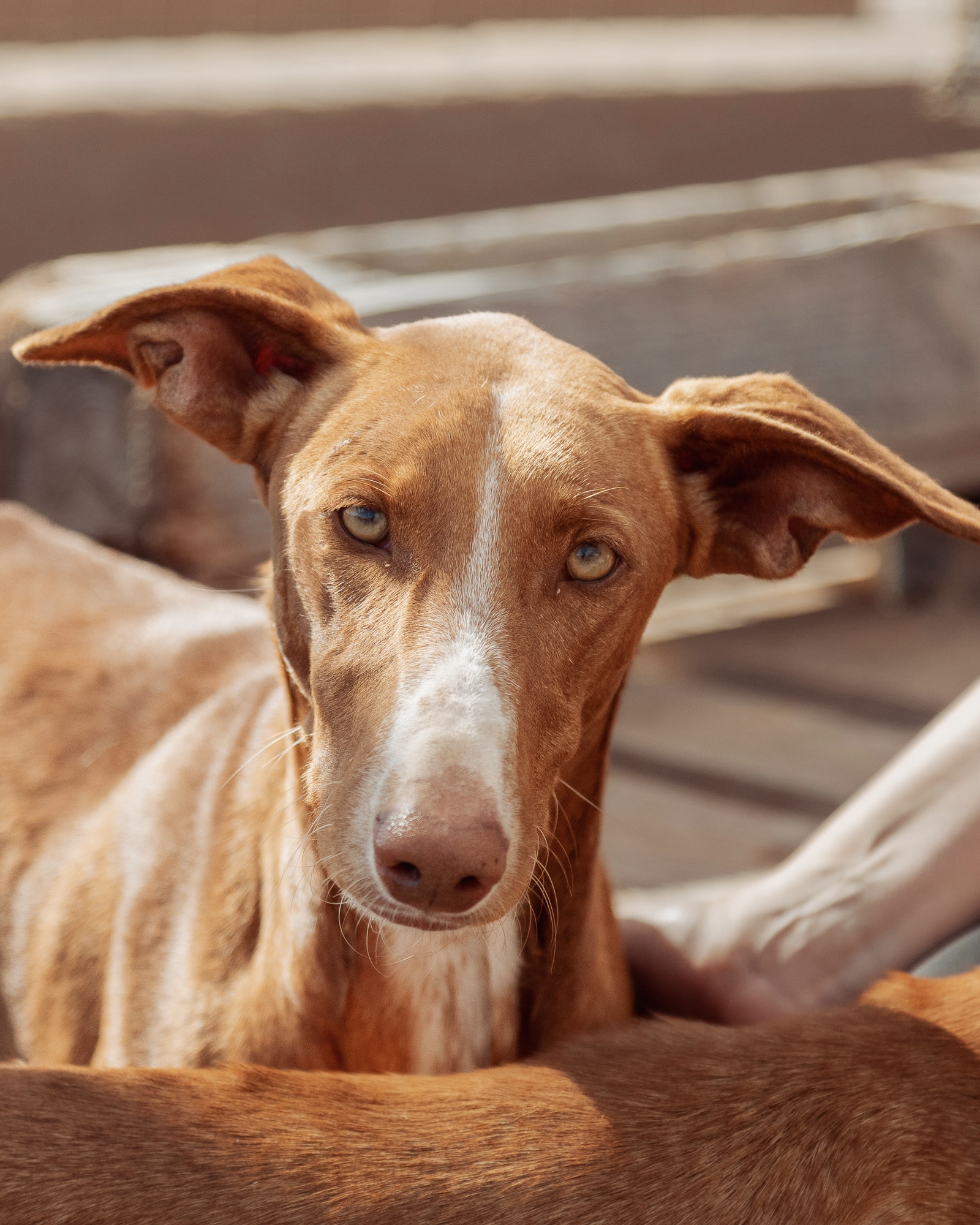 Zoe ist eine ruhige, menschenbezogene und sehr verträgliche Podenco-Hündin, die mit Hunden, Katzen und Kindern bestens auskommt. Sie liebt Nähe, Kuscheln und gemeinsame Zeit und sucht nun ein liebevolles Zuhause, idealerweise mit Podenco-Erfahrung und sicher eingezäuntem Garten.