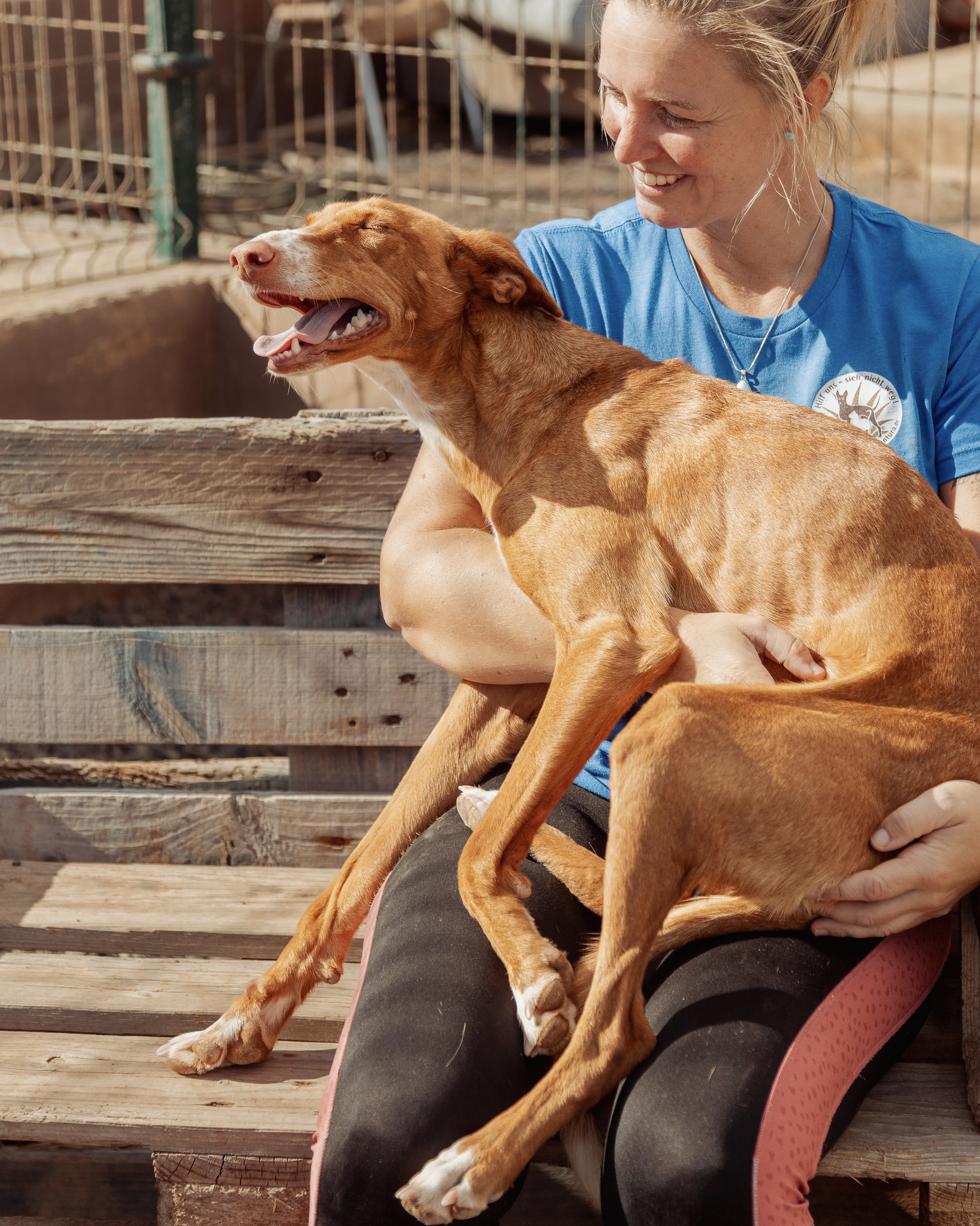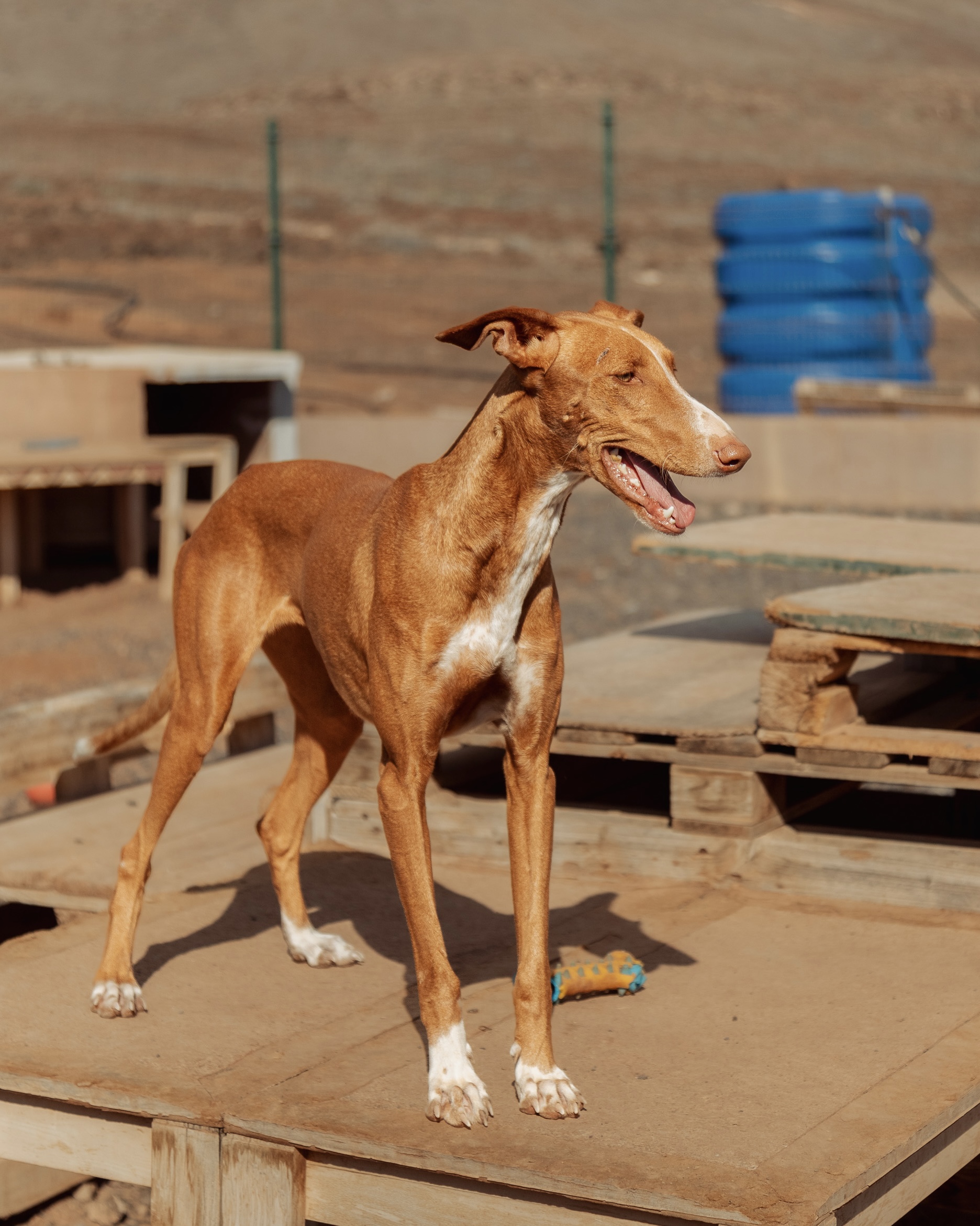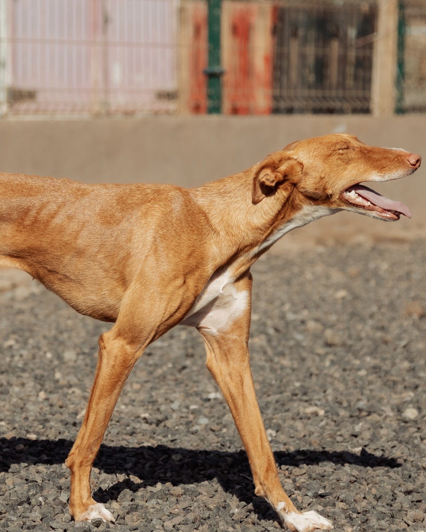 Zoe, ein liebevolles Podenco-Mädchen, verbrachten lange Zeit gemeinsam mit ihrer Freundin Chloe in der Perrera von La Pared. Schon beim ersten Anblick war klar: Diese beiden armen Seelen müssen dort raus – ihr sanftes, ausgeglichenes Wesen hat sofort alle Herzen erobert. Leider war auf der Finca zunächst kein Platz, sodass sie noch eine Weile warten mussten. Dann endlich war es soweit und die beiden wundervollen Hündinnen durften auf die Finca Zoe ziehen.