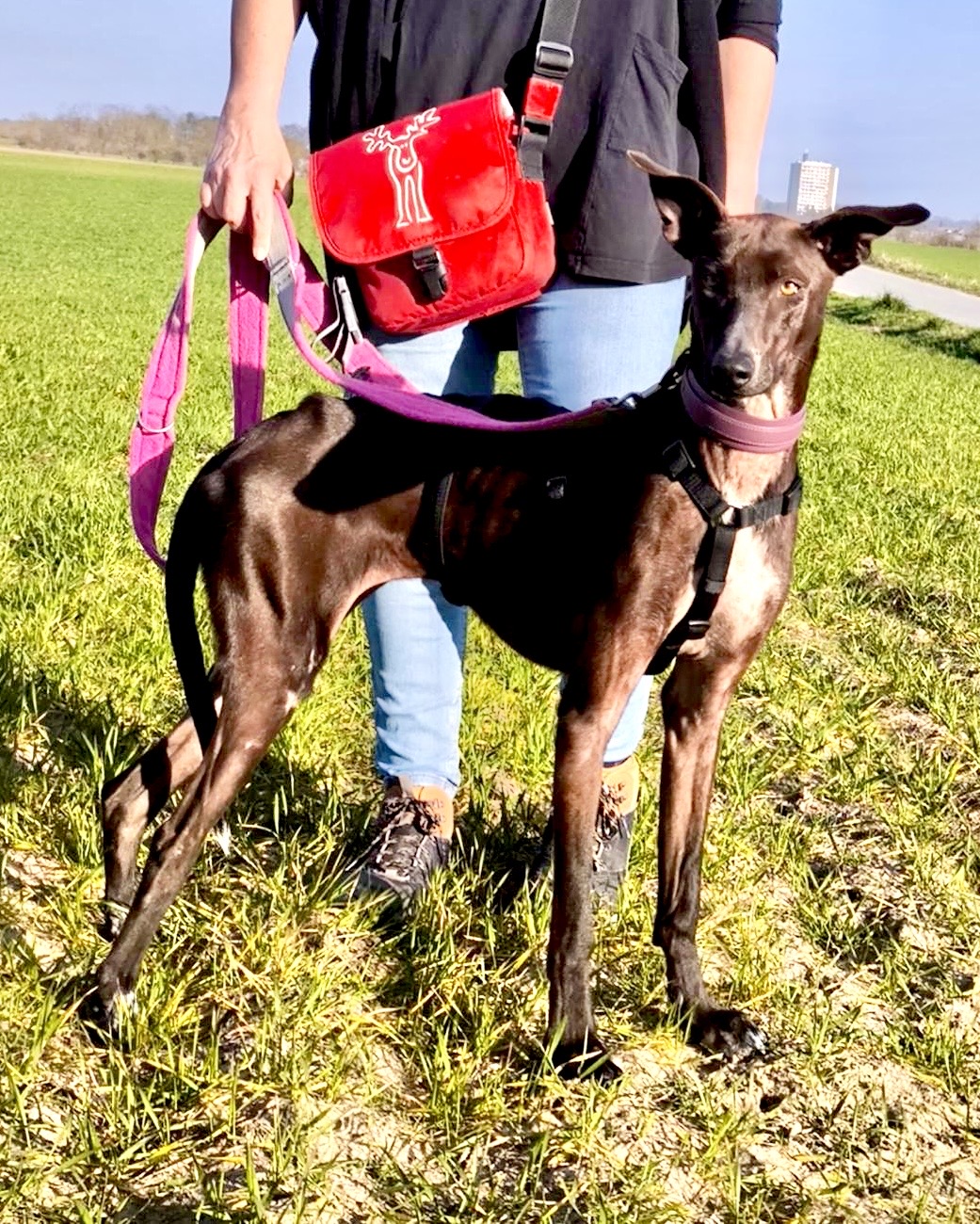 Biene ist eine junge, lebensfrohe Podenca, die trotz einer alten Verletzung voller Energie und Spielfreude steckt. Sie ist sehr menschenbezogen, verschmust und liebt das Toben mit anderen Hunden. Für Biene wünschen wir uns ein liebevolles Zuhause mit sicherem Freilauf und idealerweise einem Hundekumpel an ihrer Seite.