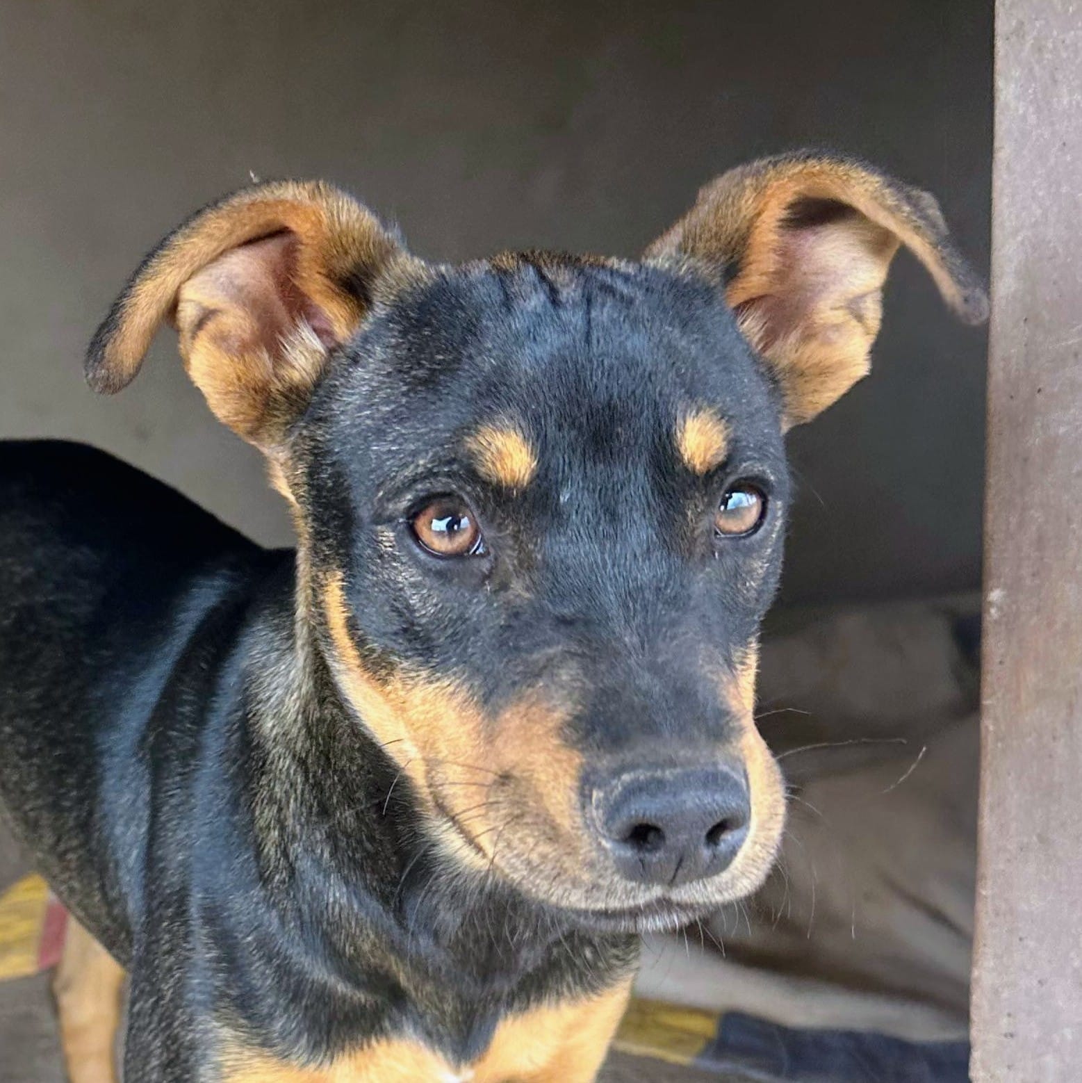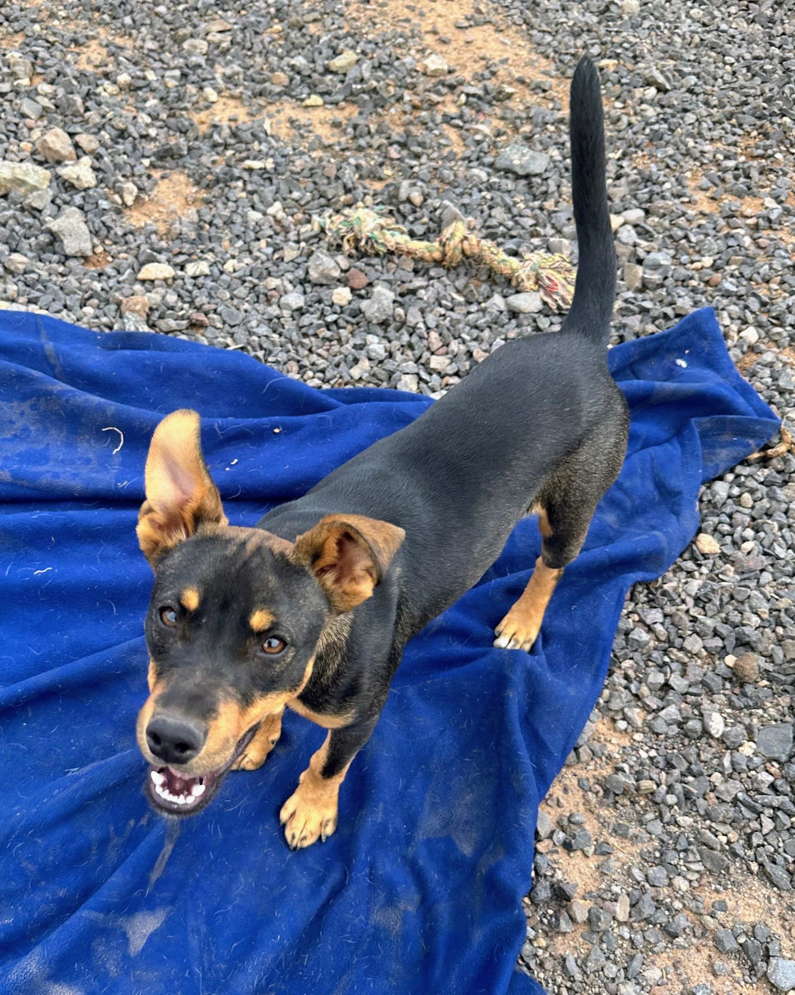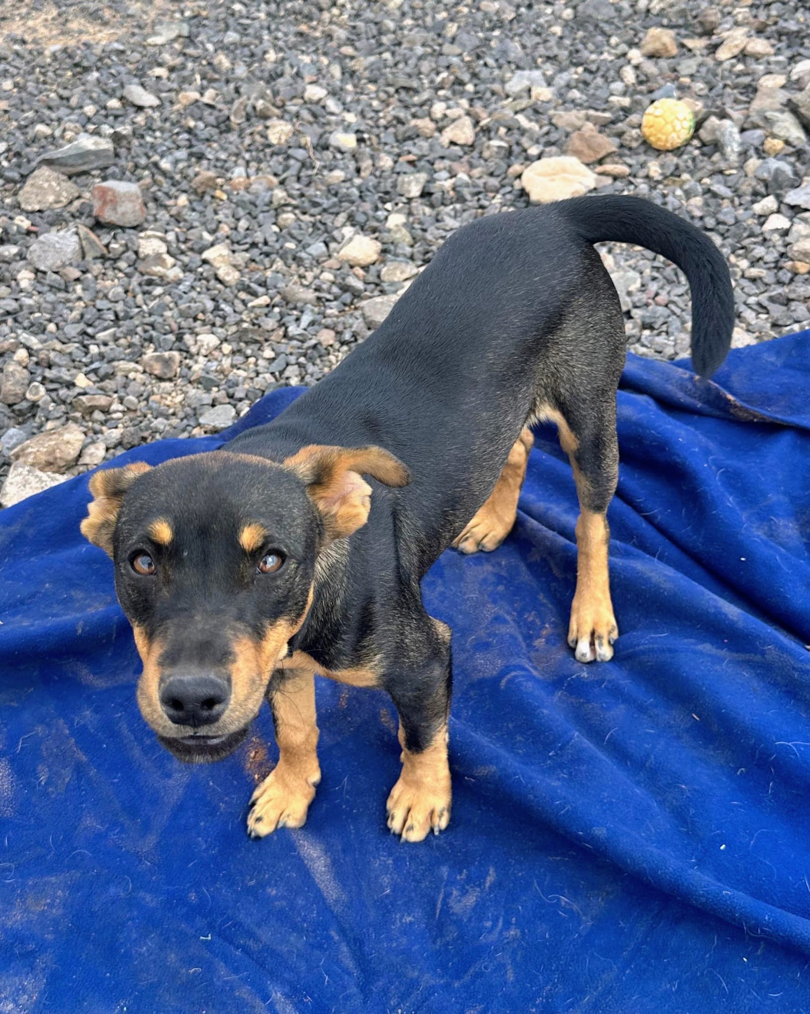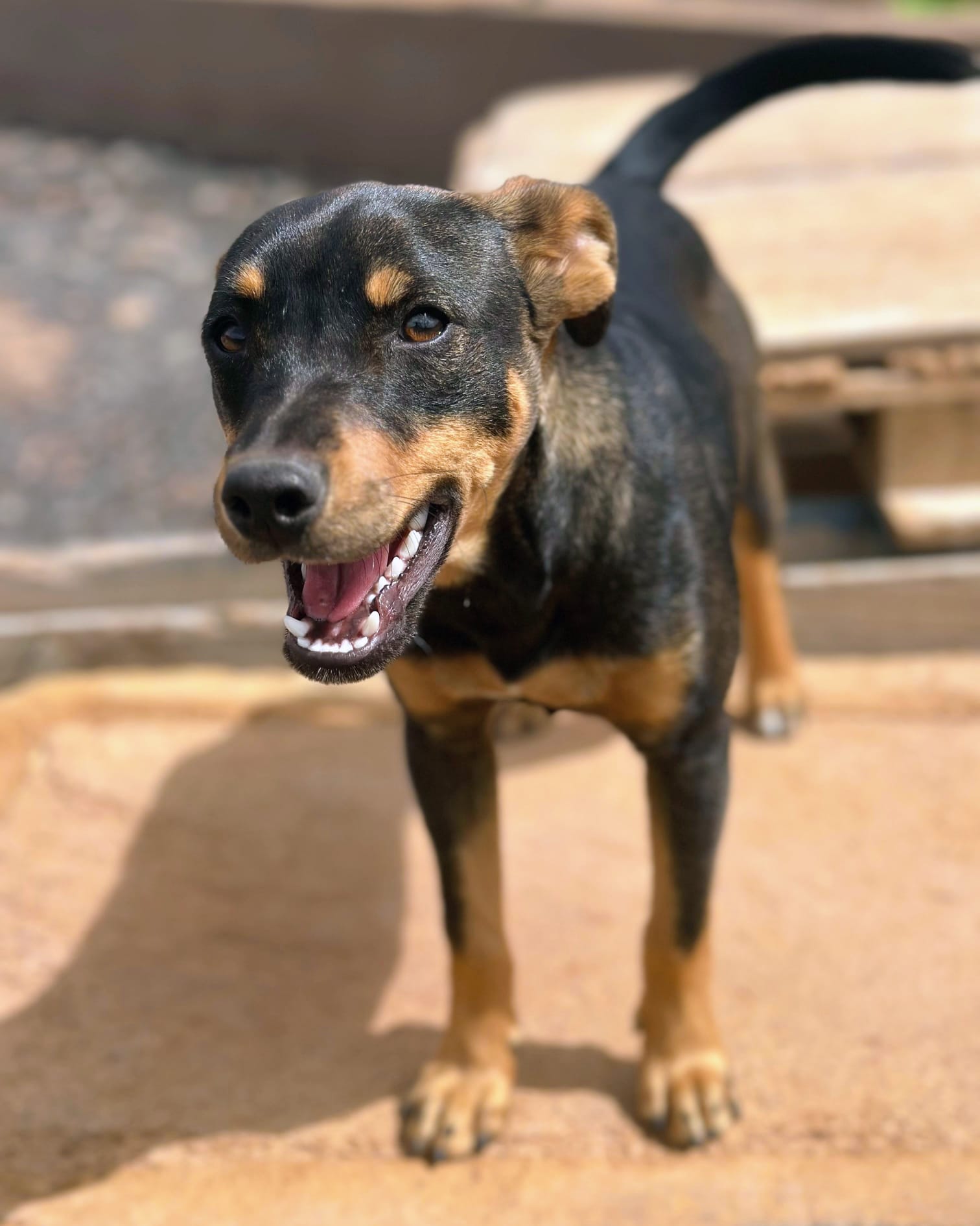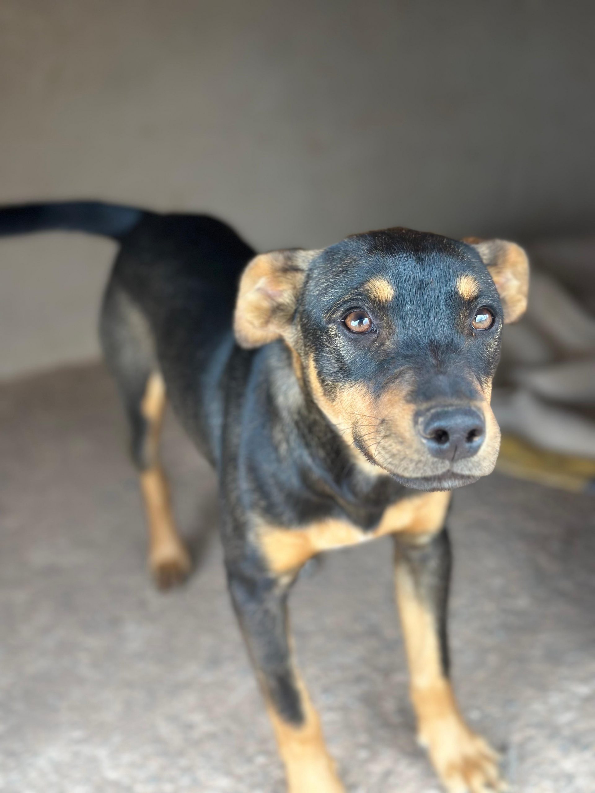 Flori lernten wir in der Perera kennen, als wir eigentlich einen anderen Hund abholen wollten. Dort saß er – und erinnerte uns sofort an zwei Hunde, die kurz zuvor in ihre neuen Familien ausgereist waren: Fiete und Fred. Auch sein Zahnstand deutet auf genau dasselbe Alter hin. Es wäre also ein erstaunlicher Zufall, wenn Flori nicht tatsächlich ein Bruder der beiden wäre. Deshalb bekam auch er denselben Anfangsbuchstaben – und so wurde aus ihm Flori.