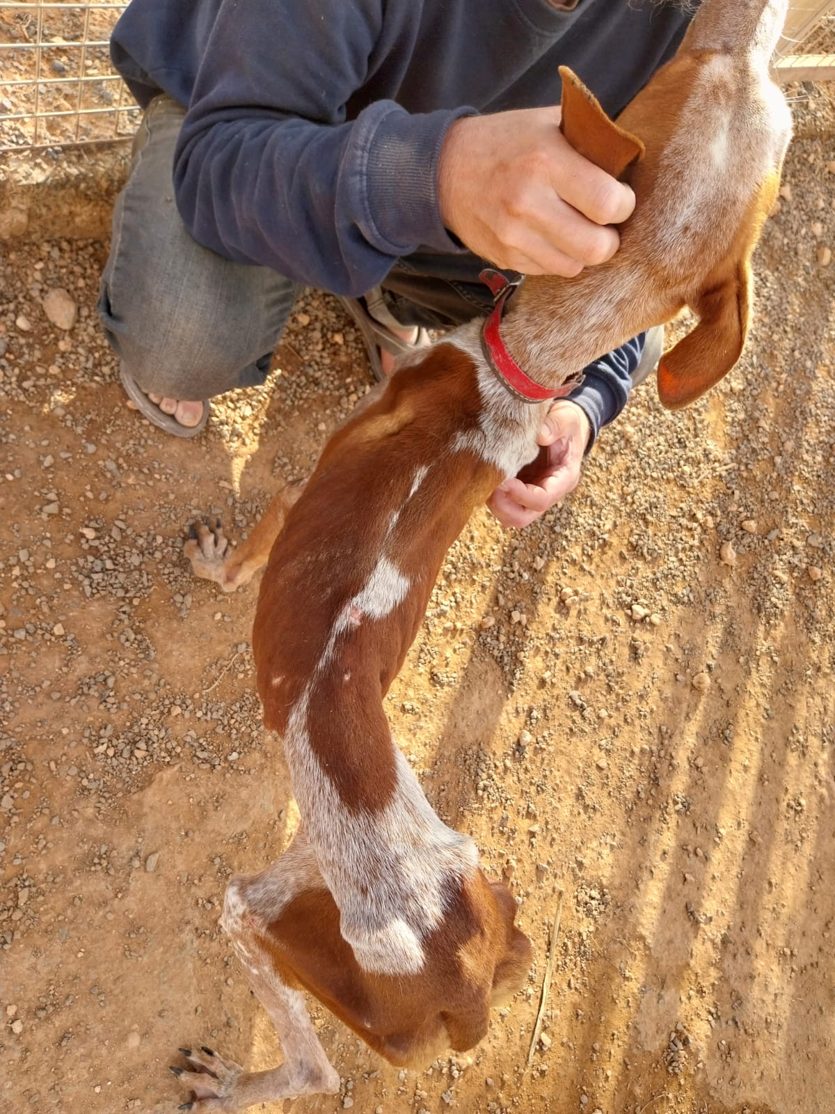 Zum Ende des Jahres 2025 konnten wir im Rahmen einer größeren Rettungsaktion nach Beendigung der Jagdsaison mehrere Podencos aus der Perrera holen. Dank vieler lieber Spender:innen durften insgesamt acht Podencos, größtenteils stark abgemagert und geschwächt, auf die Tierschutzfinca von Sarah und Sven ziehen.