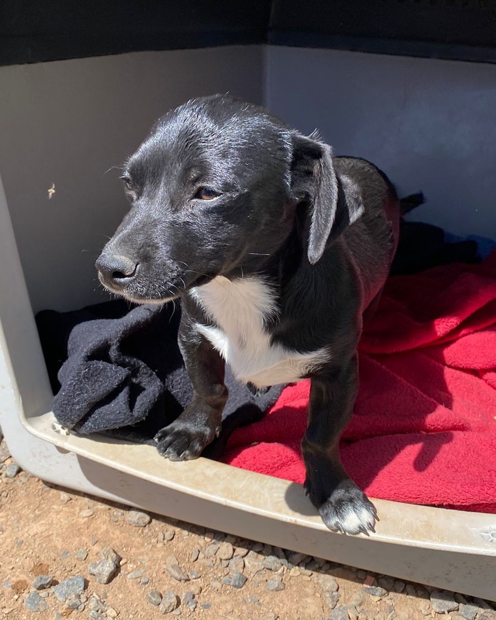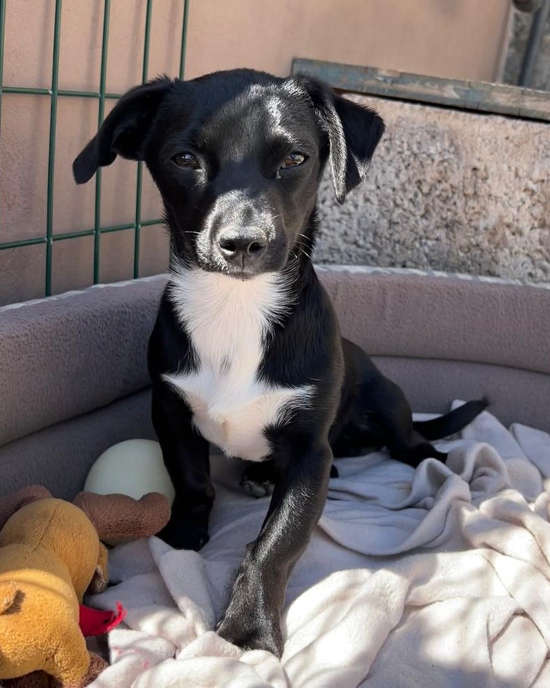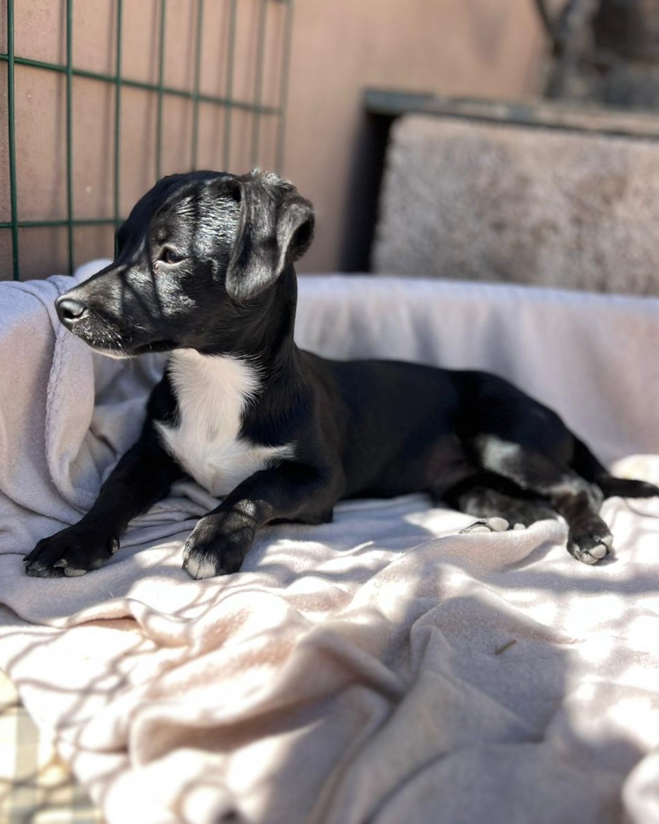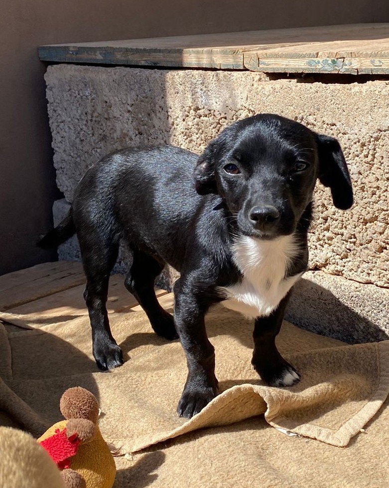 Loki wurde gemeinsam mit seinen Geschwistern Lolo und Lizzy gefunden und kam nach der Meldung an die Perrera zu uns auf die Finca Zoe. Während ein Welpe direkt ausreisen durfte, blieben die drei zusammen bei uns.