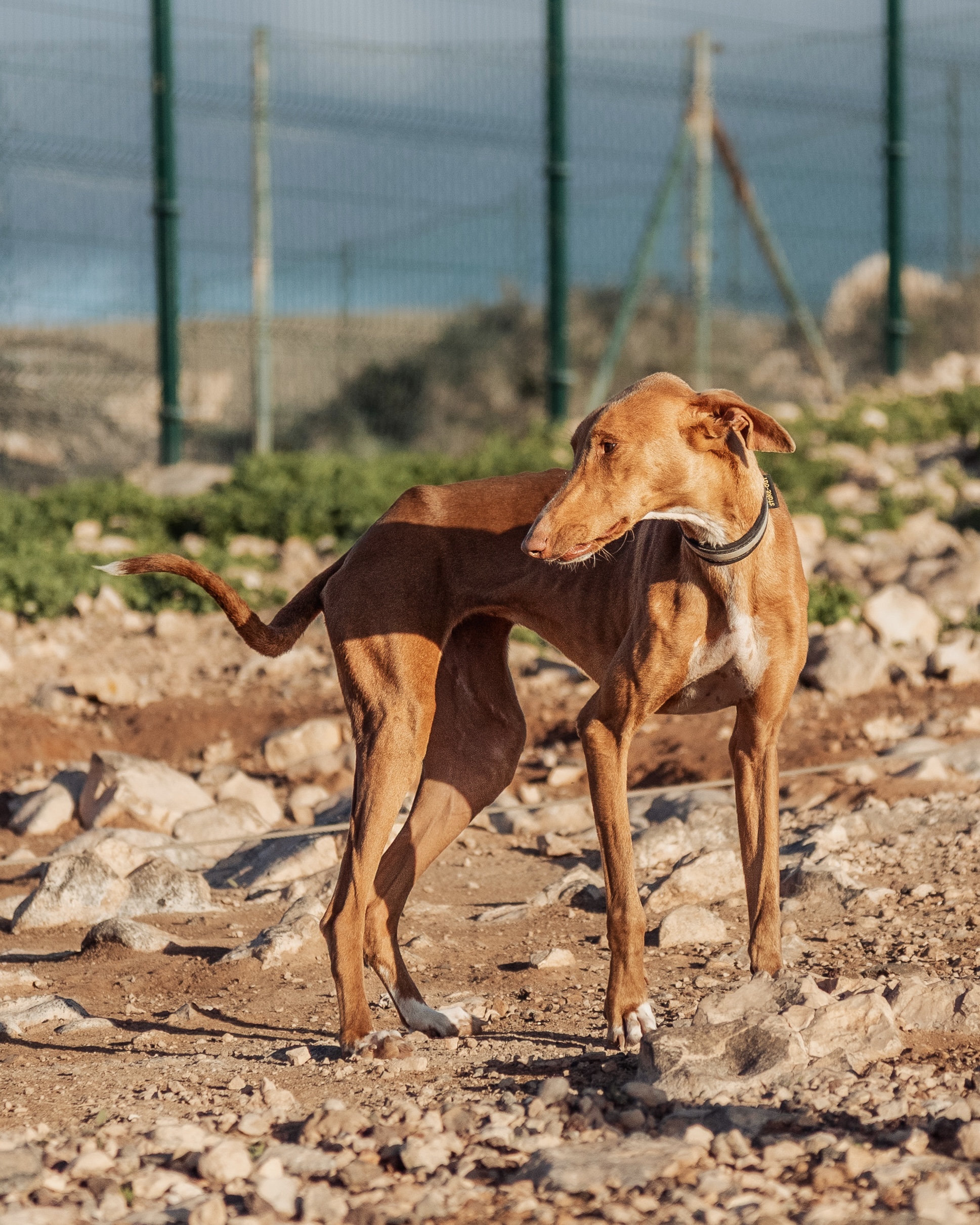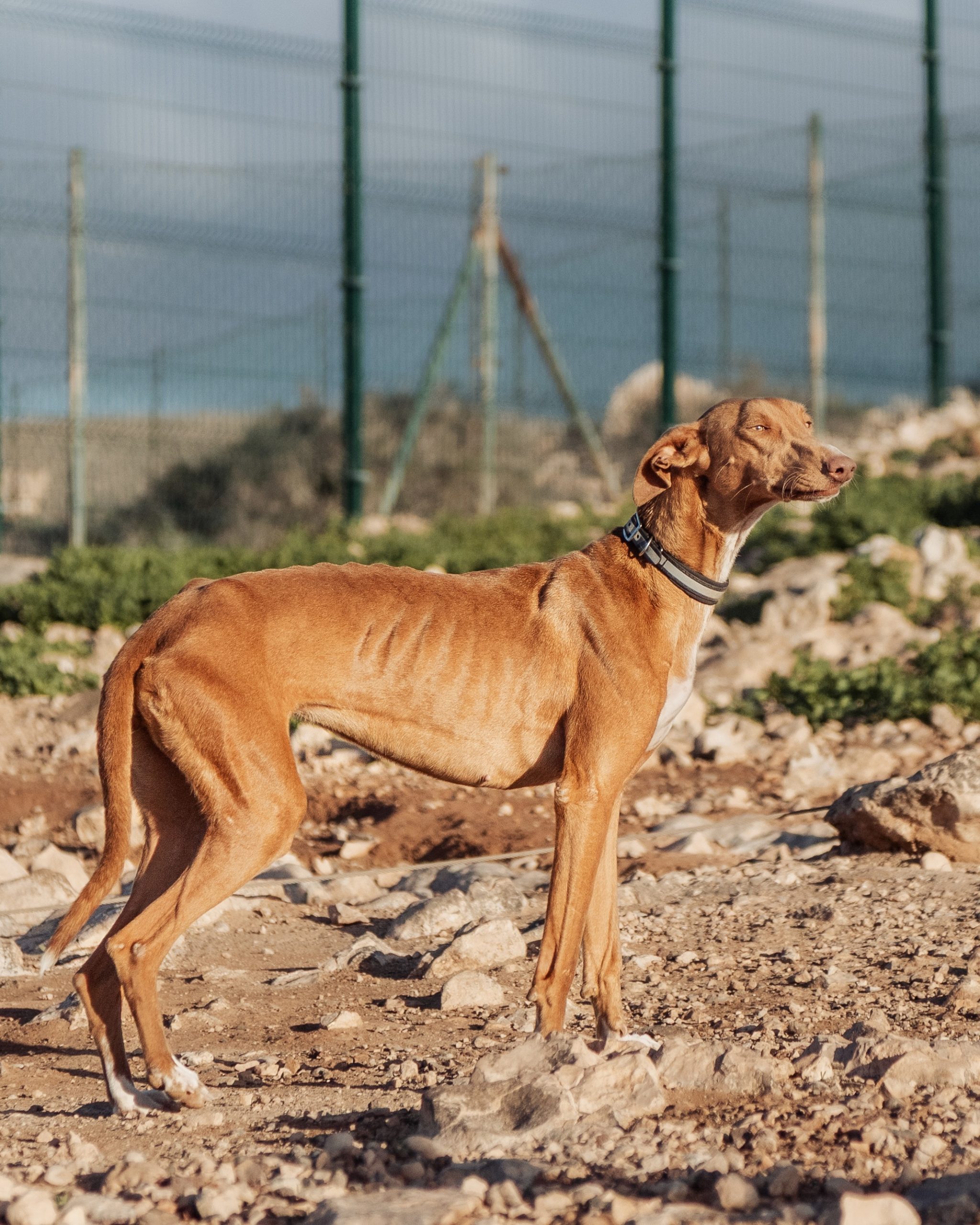 Bei einem Besuch in der Perrera von La Oliva sahen unsere Tierschutzkollegen Andrea & Pancho von der Finca Esquinzo die junge Podenca Lolita – angebunden und zurückgelassen, wie so viele ihrer Rasse nach Ende der Jagdsaison. Ohne Mikrochip und ohne jemanden, der sie vermisste, war schnell klar, dass Lolita wohl während der Jagd „ausgetestet“ und anschließend einfach entsorgt worden war.