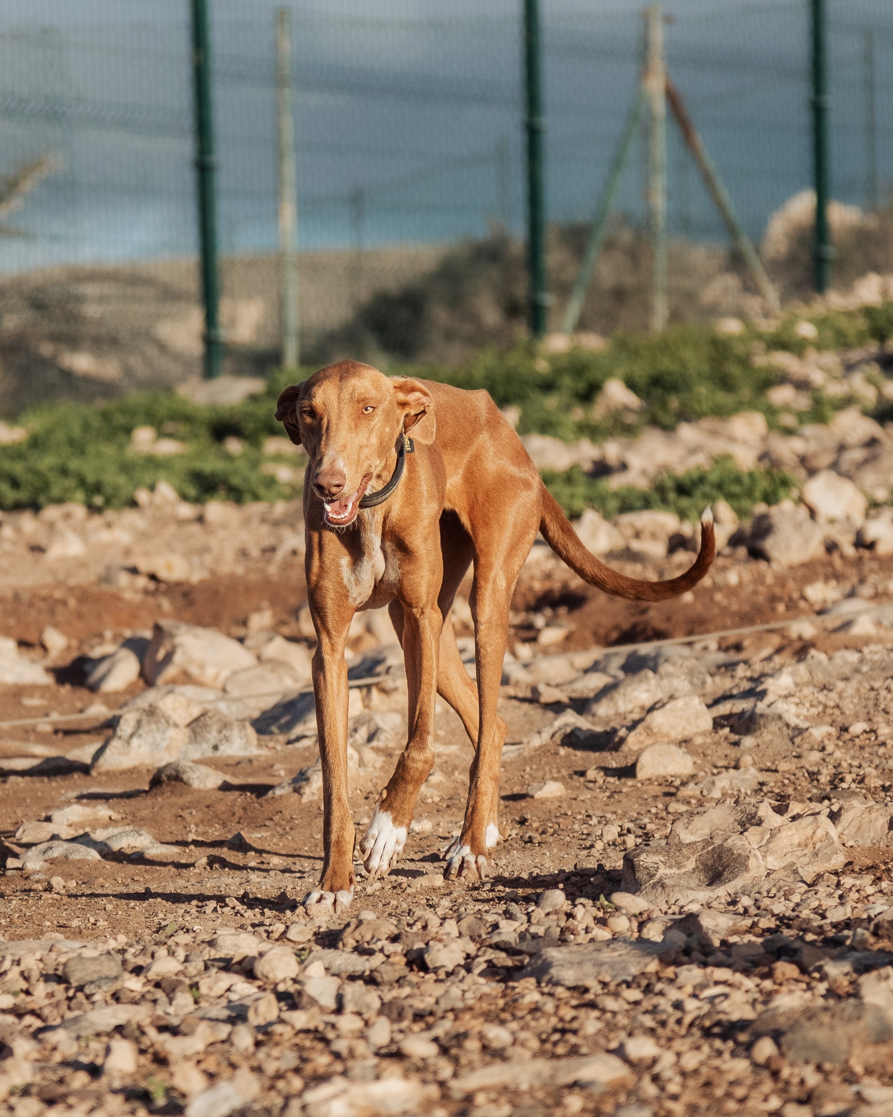 Da auf der Finca ein Plätzchen frei wurde, durfte die zarte Schönheit einziehen und sofort begann für sie ein neues, fröhliches Kapitel. Heute rennt sie mit ihren Hundekumpels um die Wette, genießt die Bewegungsfreiheit und zeigt dabei ihr sanftes, sehr menschenbezogenes Wesen.