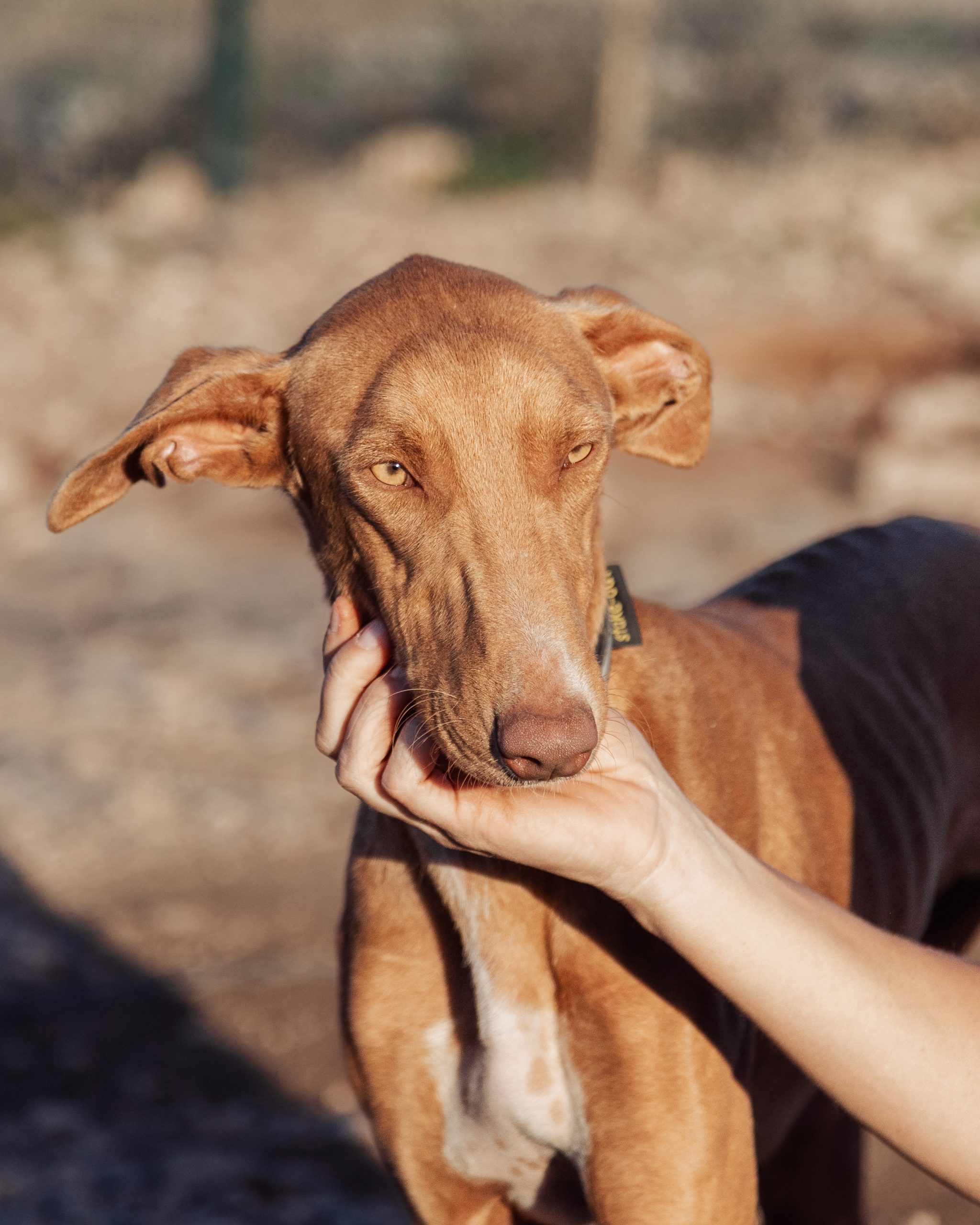 Lolita ist eine junge, lebensfrohe und sehr menschenbezogene Podenca, die nach einem schweren Start nun ihr fröhliches und verspieltes Wesen zeigt. Sie ist verschmust, aktiv und verträglich mit anderen Hunden, bringt jedoch rassetypisch einen Jagdtrieb mit. Für sie wird ein liebevolles, aktives Zuhause gesucht, in dem sie ausreichend Bewegung und Sicherheit genießen kann.