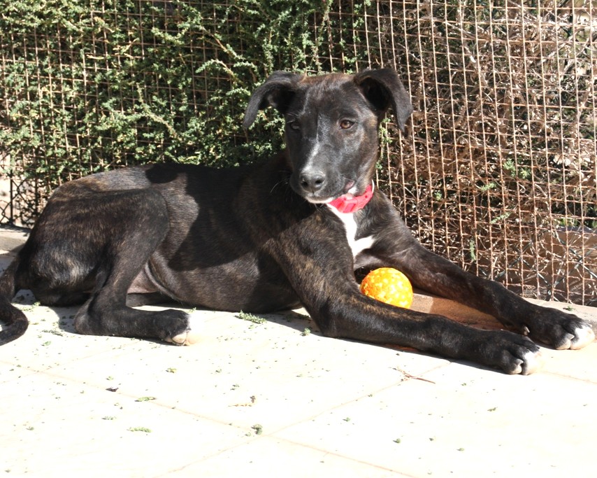 Salsa zeigt sich auf der Finca als fröhliche und sehr verspielte junge Hündin. Wie es sich für einen Welpen gehört, hat sie jede Menge Energie und entdeckt neugierig ihre Umgebung. Am liebsten verbringt sie ihre Zeit damit, mit ihren Schwestern zu toben, miteinander zu spielen oder neue Dinge auszuprobieren.