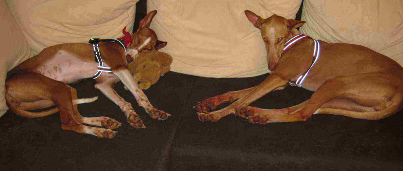 Hallo aus Deutschland ich bin jetzt seit 11 Wochen hier und meine Leute sagen ich mache mich prächtig. Liegt evtl. am neuen Namen (=neues Leben!?) Angst habe ich kaum noch ausser wenn drei Gärten weiter ein großer Kran steht, was zum Glück nur zwei Tage der Fall war. Jildou ist ein toller Kumpeln zum toben und Caipi ist unsere Gouvernante. Es ist toll, ich werde hier wirklich geliebt und nix Mitleid wegen meiner Narbe, ich glaube die sehen die beiden gar nicht mehr... Na ja alles dürfen wir hier natürlich auch nicht, Hundeschule war schon angesagt, aber nur vier Einzelstunden. Ich schließe mich dem dicken Dankeschön an euch alle an, welche Jildou ausgesprochen hat. Ohne euch und eure Aufopfernde Hilfe wäre ich nicht hier Viele liebe Grüße Mojito und der rest der Bande Bei Jildou hat das mit den BIlern nicht geklappt, dann halt jetzt ein mit uns zusammen ds Bild ist groß gepixelt aber sonst passt das hier nicht