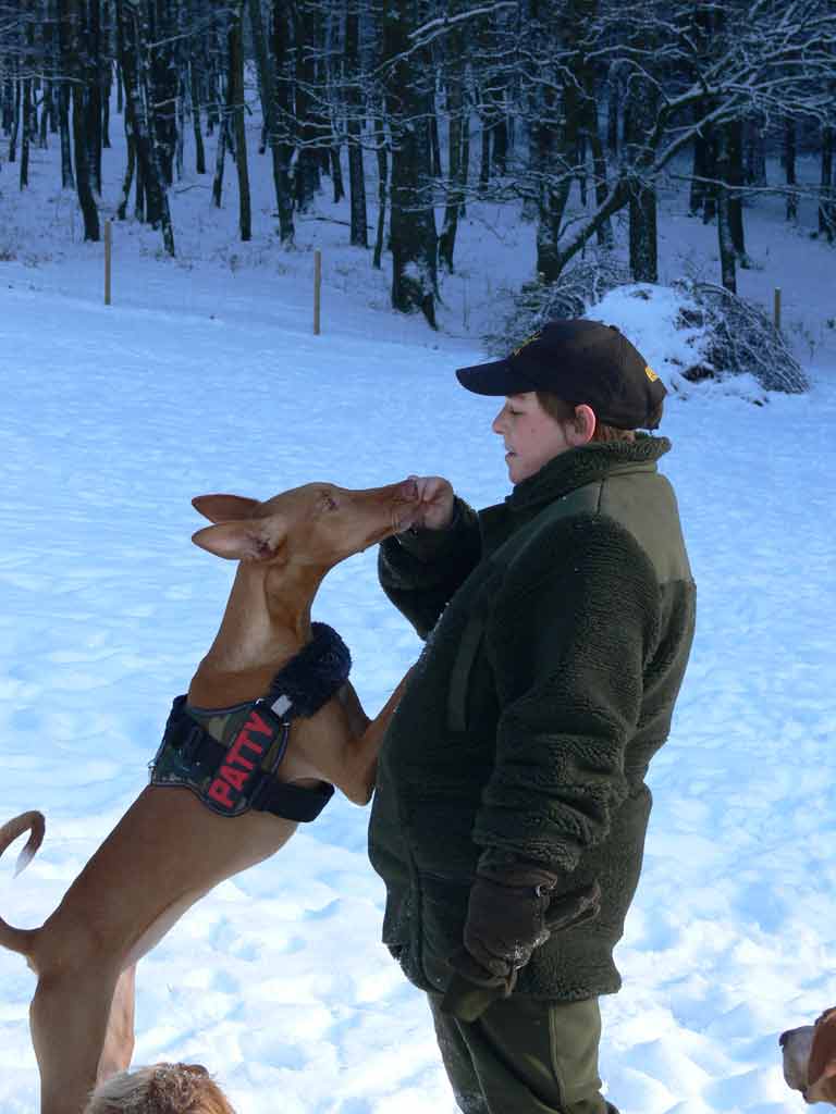 Patty ist seit Anfang Oktober 2010 bei uns. Sie war ein sehr schüchterner Hund, die sich nur ungern anfassen liess, immer Abstand hielt und jeder menschlichen Nähe aus dem Weg ging. Das hat sich nun sehr schnell gelegt. Sie sucht die Nähe, bettelt um Streicheleinheiten, liebt es, an uns angekuschelt mit im Bett zu schlafen, lernt sehr schnell und macht für ein Leckerchen einfach alles. Selbst Freilauf ist bei Ihr möglich, denn sie hört ganz wunderbar. Von Ihrem grossen Freund Benji (auch ein THF-Hund) ist sie quasi unzertrennlich. Auch die Katzen hat sie ins Herz geschlossen und putzt sie leidenschaftlich. Patty ist eine ganz Liebe und Süsse, und wohnt nun im Siegerland zusammen mit einem Podi-Mix, zwei Cavalieren und drei Katzen.
