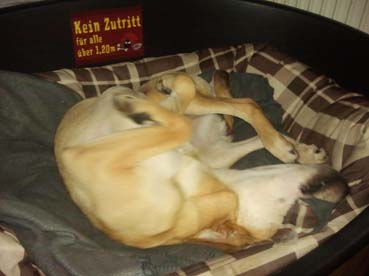 Ich bin Jamie (ehemals Bibbie) und bin seit Juni 2011 in meinem neuen zu Hause. Jetzt bin ich mittlerweile fast 1 1/4 Jahr alt und bin sooo glücklich bei meinen beiden Frauchen! In den ersten 3 Monaten habe ich 12 Kilo zugenommen, weil ich so mager war! Am Anfang war alles so aufregend und neu und mußte oft zum Arzt. Jetzt bin ich aber endlich ganz gesund und putzmunter, so dass ich vor lauter Schalk im Nacken mehrmals die Couch auseinandergepflückt habe! Gott sei dank können meine Frauchen mir nicht wirklich böse sein, da hab ich Schwein gehabt! ;-) Ansonsten kann ich viel toben, lerne ganz viel dazu, kriege immer leckeres Fressen, bin totaaal verschmust und liebe es, Bälle fangen zu gehen! :-D Ich habe viele Hundefreunde gefunden, mit denen ich ausgelassen spielen und raufen kann - DAS MACHT SPASS! Hier gehör' ich hin und möchte hier nie wieder weg! :-)