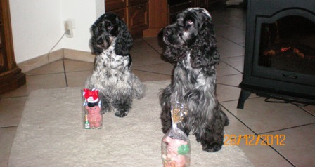 Liebe Weihnachtsgrüße und alles Gute für das neue Jahr an alle bisher vermittelten "4-Beiner" und auch an die, die noch zur Vermittlung anstehen. Ich hoffe, daß ihr die "Ballerei" gut übersteht. Auch viele Liebe Grüße an das Team von "Tierhilfe Fuerteventura". Ihr habt bisher tolle Arbeit geleistet. Macht weiter so, die geretteten Tiere werden es euch immer DANKEN. An dem Bild mit meinem Kumpel Lino (das ist der mit dem großen Kopf) und den Glücksschweinchen könnt ihr ahnen, wie gut ich es hier angetroffen habe. Wir beide sind jetzt 4 Jahre alt geworden und ich hoffe, daß noch viele Jahre hinzu kommen. Im Jahr 2013 werde ich mich mit ein paar Bildern wieder melden. Eure Lady