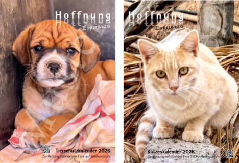 Unsere beiden Tierschutzkalender 2026 - Hilfe für die Rettung notleidender Tiere auf Fuerteventura - können ab sofort vorbestellt werden.