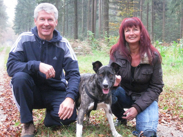 Dymka fanden wir eines morgens angebunden vor der Perrera. Ganz offensichtlich wurde sie ausgesetzt. Ihr rechter Fermurkopf war gebrochen und vollständig zerstört - wie sich heraus stellte, durch äußerliche Fremdeinwirkung (Unfall oder Tritte/Schläge). Es hatten sich bereits Arthrosen gebildet und der Hündin weitere Schmerzen bereitet. In 08/11 wurde sie einem Spezialisten in Deutschland vorgestellt und operiert. Die tierärztliche Prognose war sehr gut und mit Hilfe von physiotherapeutischen Massnahmen und nachfolgenden Behandlungen wird Dymka nun mutmaßlich ein beschwerdefreies Leben führen können.
