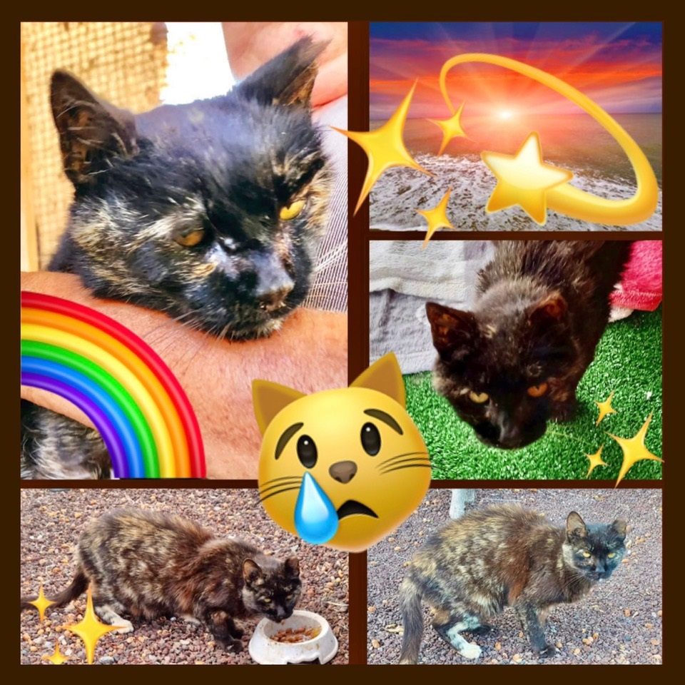 Heute müssen wir Euch traurig mitteilen, dass unser altes Schildpattmädchen Ohmchen nach über 15 Jahren ihre letzte Reise ins Regenbogenland angetreten hat. Die Katzenseniorin lebte fast die gesamten Jahre am Iberostar Park Hotel in Jandia und wurde von Sabine und zahlenreichen lieben Hotelgästen versorgt.