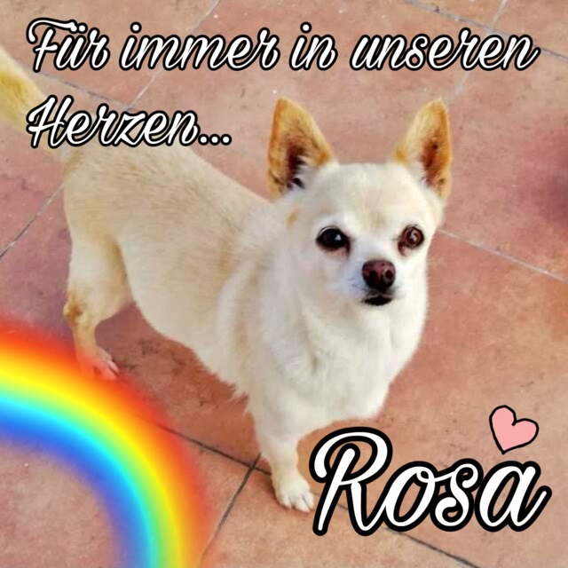 Mit unendlich tiefer Trauer müssen wir mitteilen, dass die liebe Rosa gestern über die Regenbogenbrücke gegangen ist .
