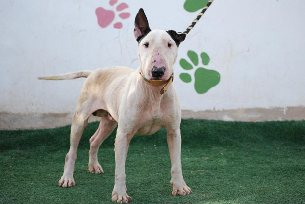 Rogier war ein waschechter Standard Bullterrier Rüde und damit einer Rasse zugehörig, die auf Fuerteventura recht selten ist. Dadurch war er natürlich ein "Blickfang" in unserer Perrera und geneigte Interessenten ließen nicht lange auf sich warten. Wegen des Importverbotes konnten wir den hübschen Bully aber nicht nach Deutschland vermitteln, was seine Chancen auf ein eigenes zuhause natürlich sehr beschnitt.