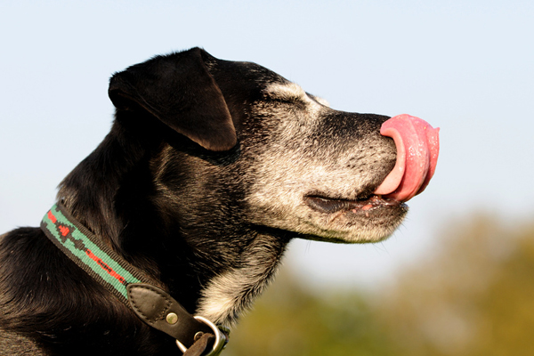 Das „Züngeln“ gehört wohl zu den am häufigsten angewandten Calming Signals. Es kann ganz kurz sein, aber auch deutlich wahrnehmbar gezeigt werden. Wenn wir Menschen gereizt oder aufgeregt sind, reagieren Hunde häufig mit Züngeln, um uns zu beruhigen.
